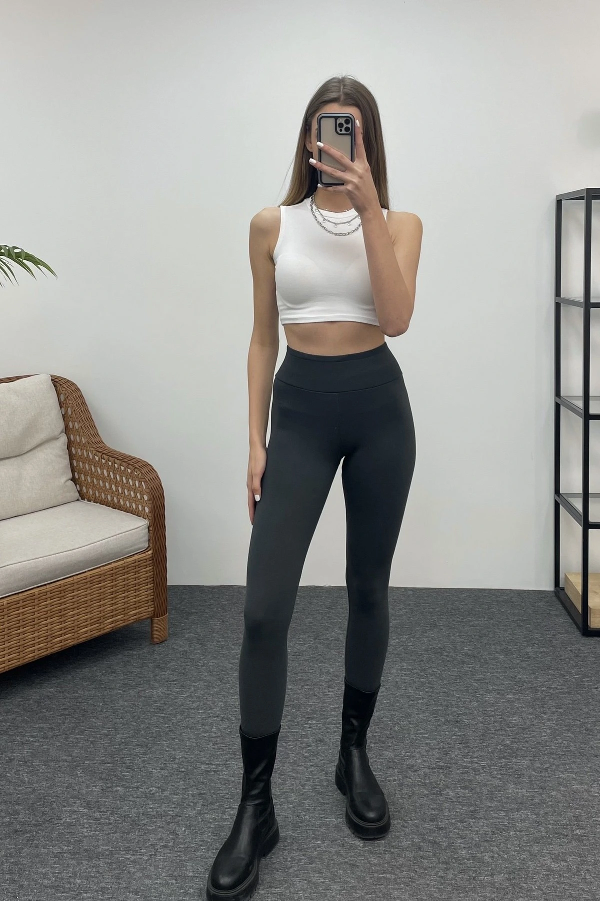 GENİŞ KEMER OYSHO KUMAŞ TAYT – ANTRASİT