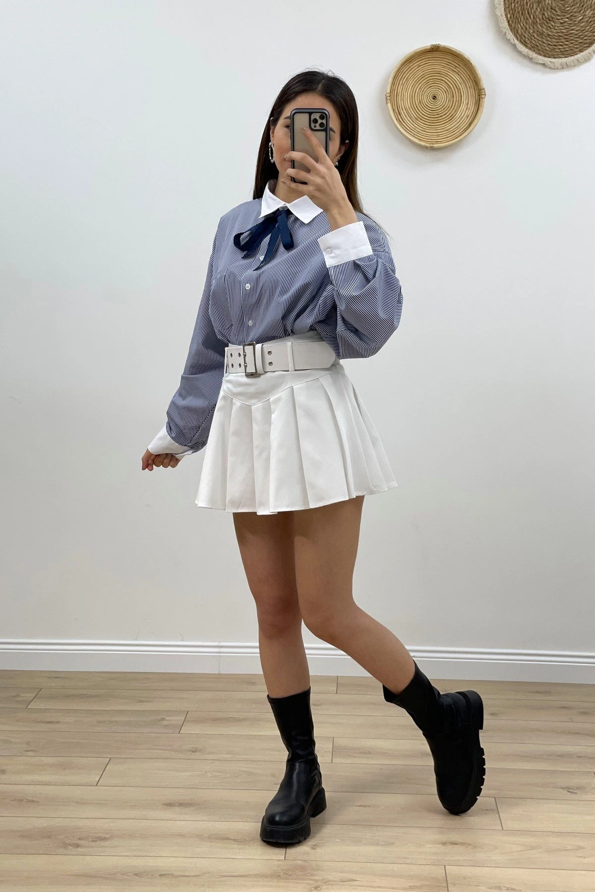 ETEĞİ KATLI ASİMETRİK ASTARLI PAMUK ETEK – BEYAZ