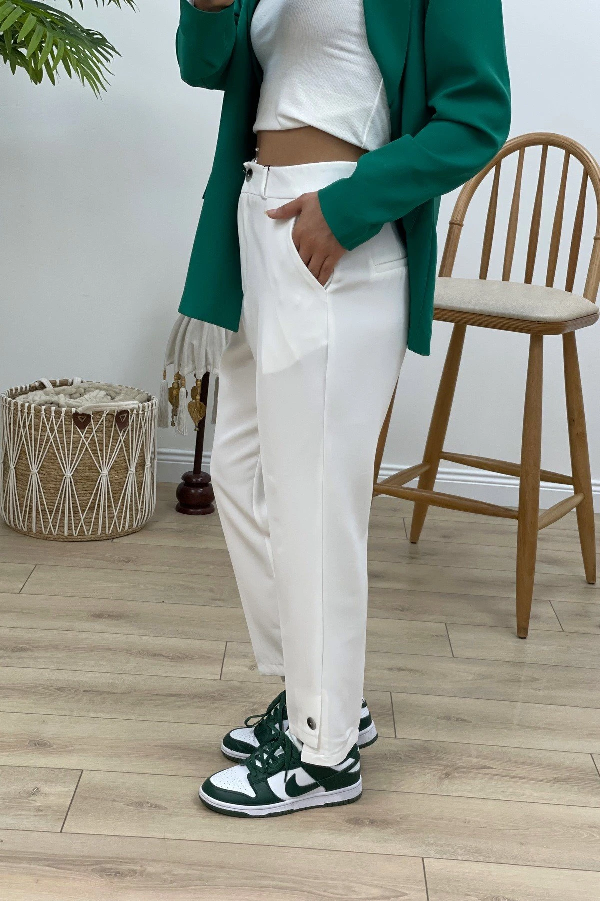 ÖN PİLİ PAÇA YIRTMAÇ LİKRALI PANTOLON – BEYAZ