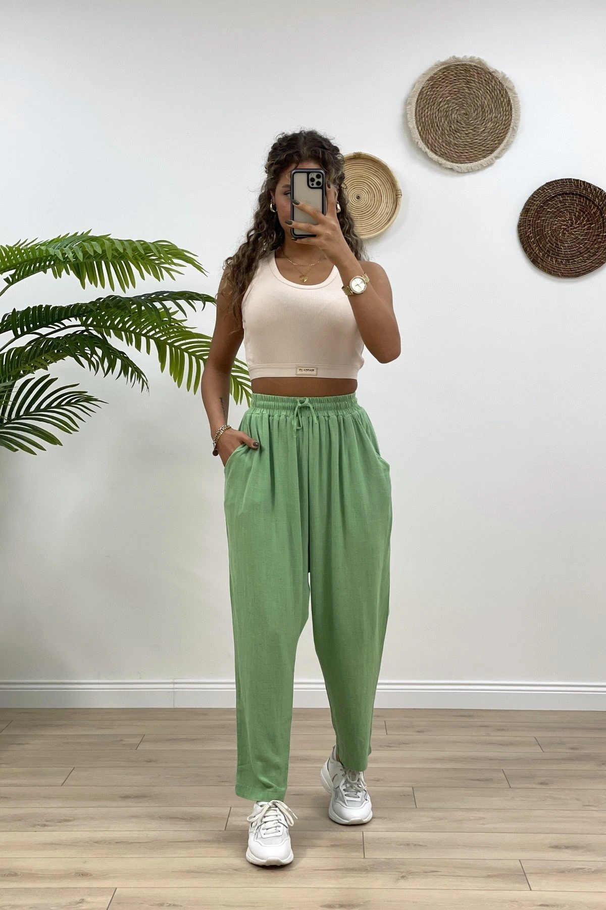 YÜKSEK BEL GENİŞ PAÇA PANTOLON – HAKİ