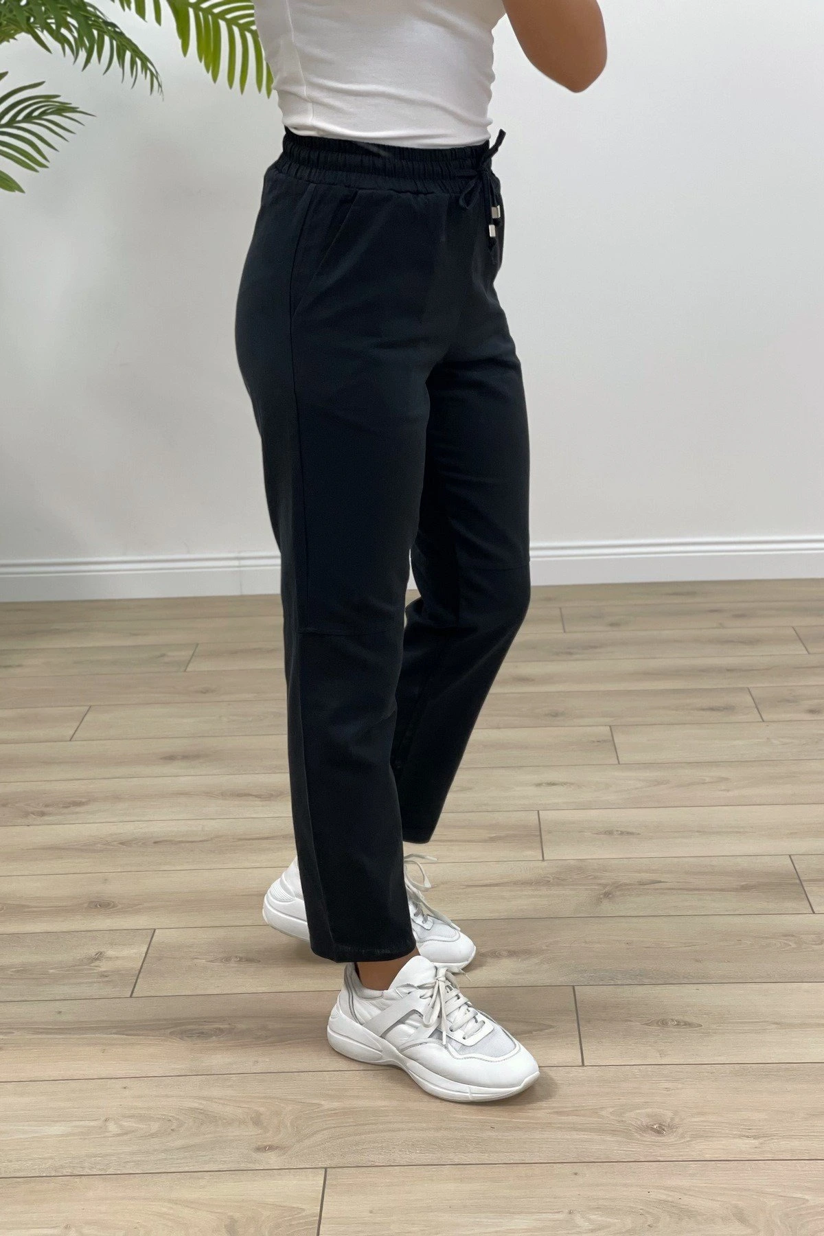 LEOPAR ŞERİT DETAYLI HAVUÇ MODEL PANTOLON – LACİVERT