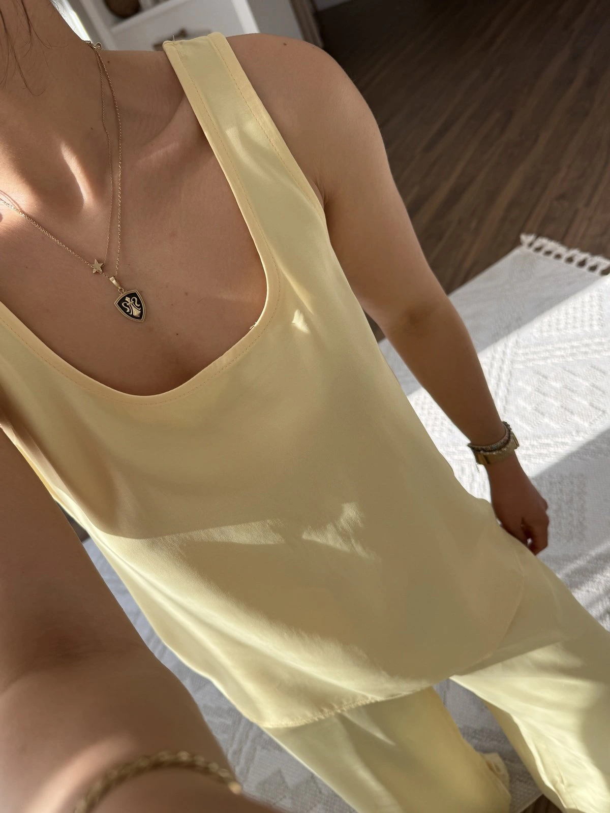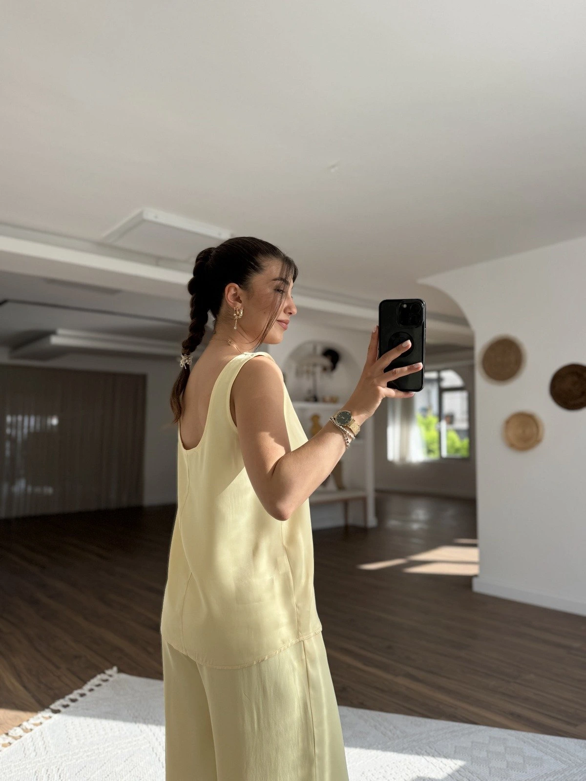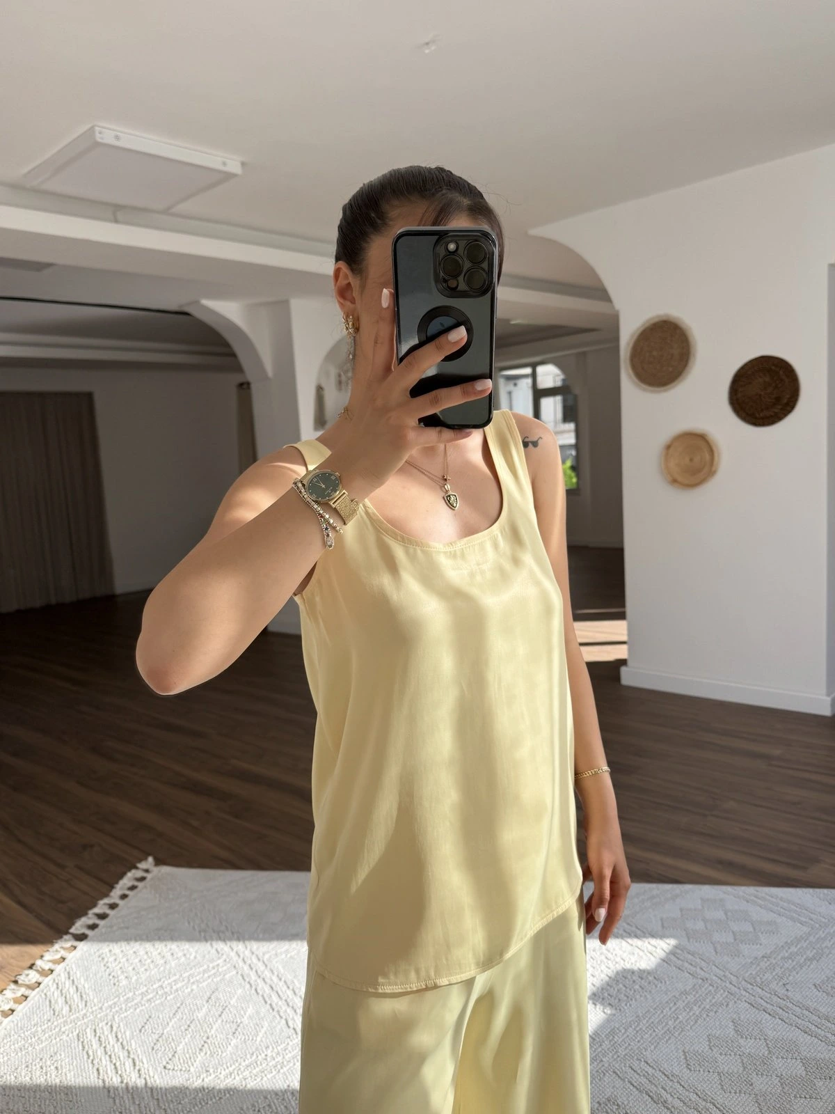 ARKA ÖN U YAKA VİSKON SATEN ATLET – SARI