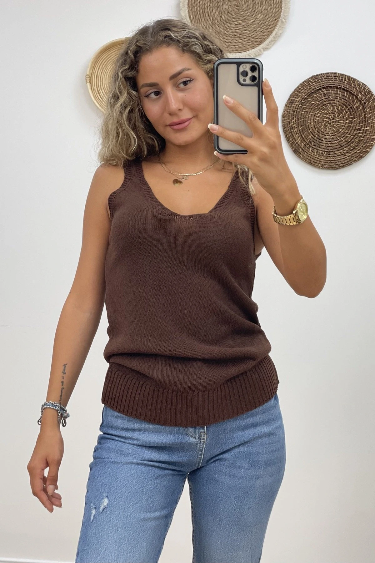 ARKA ÖN V YAKA MERSERİZE ATLET – KAHVE