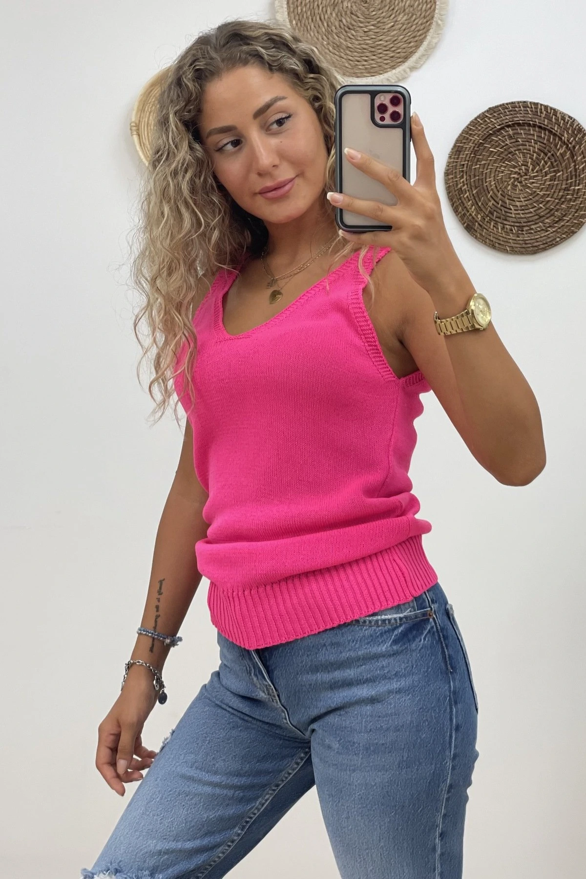 ARKA ÖN V YAKA MERSERİZE ATLET – NEON PEMBE