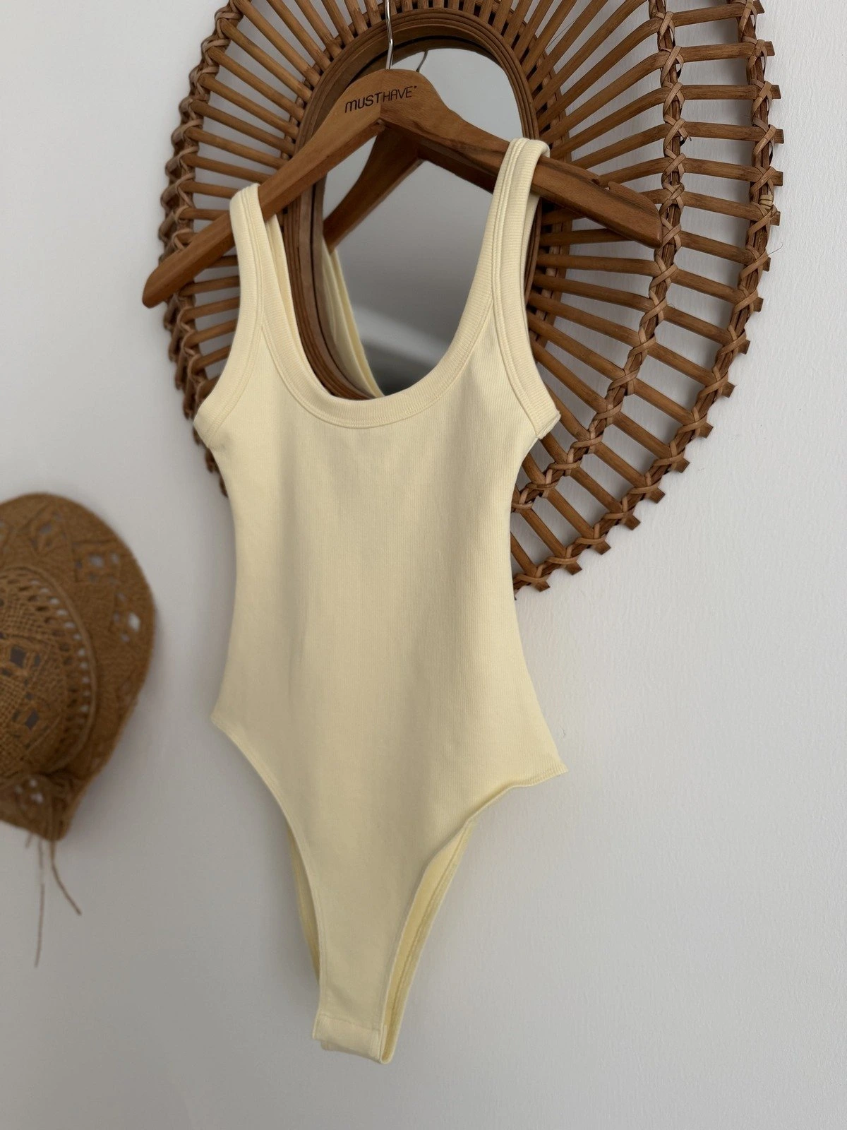 ASKILI PAMUK ÇITÇITLI BODYSUİT – AÇIK SARI