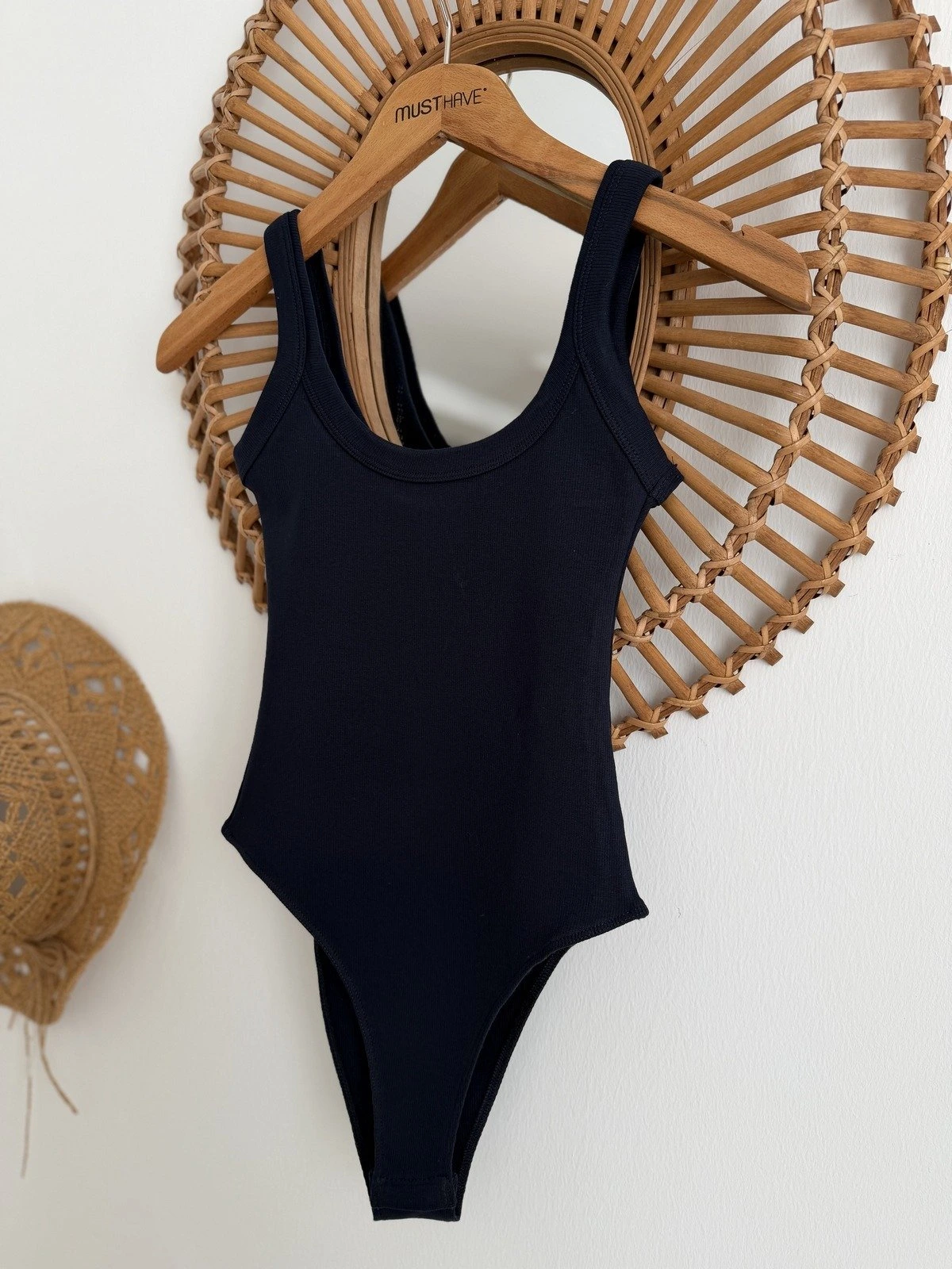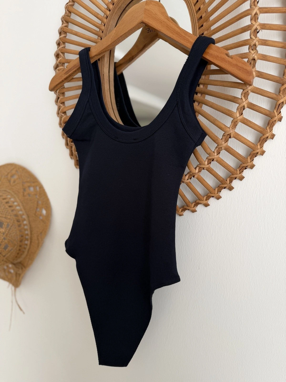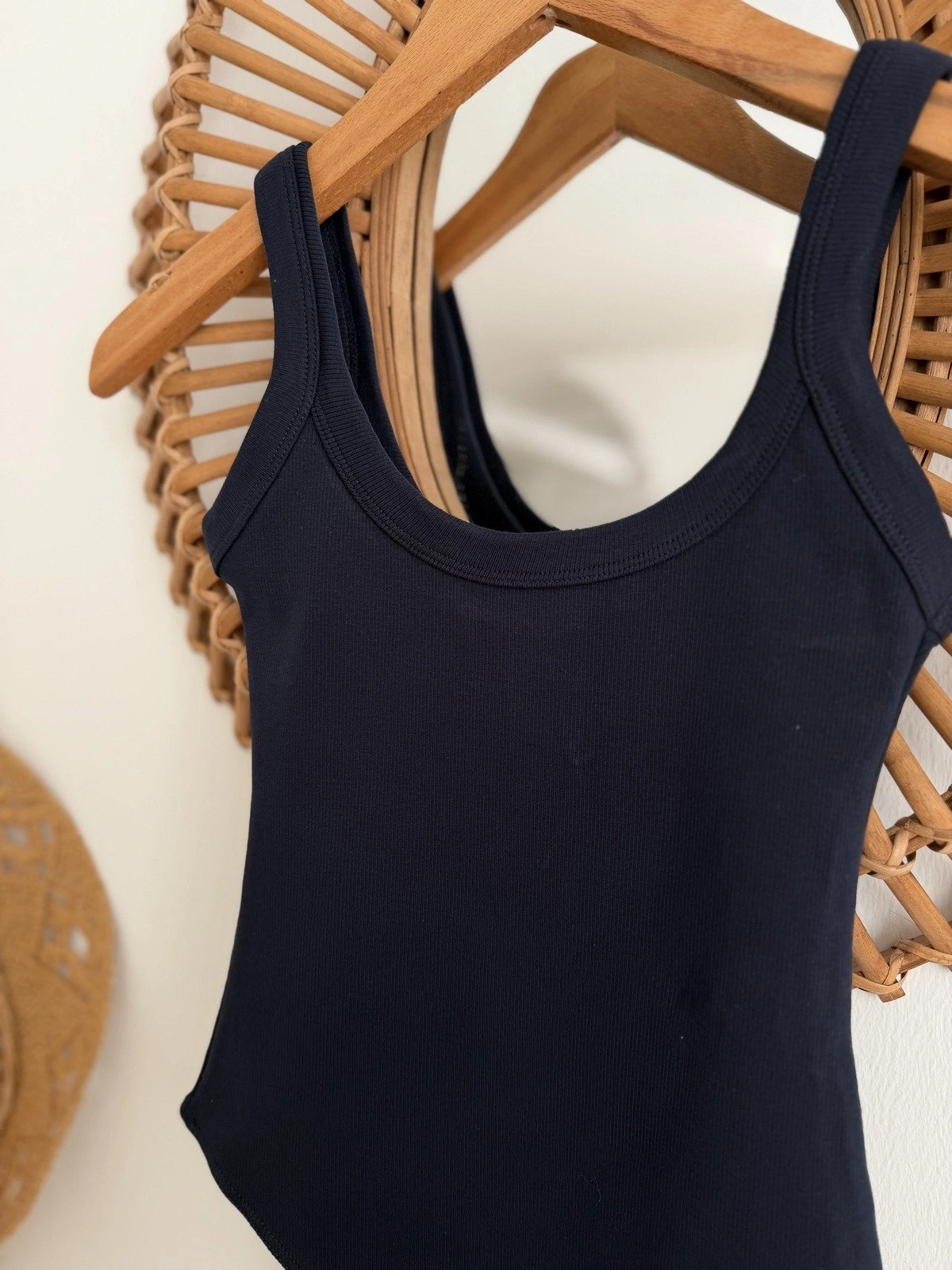 ASKILI PAMUK ÇITÇITLI BODYSUİT – KOYU LACİVERT