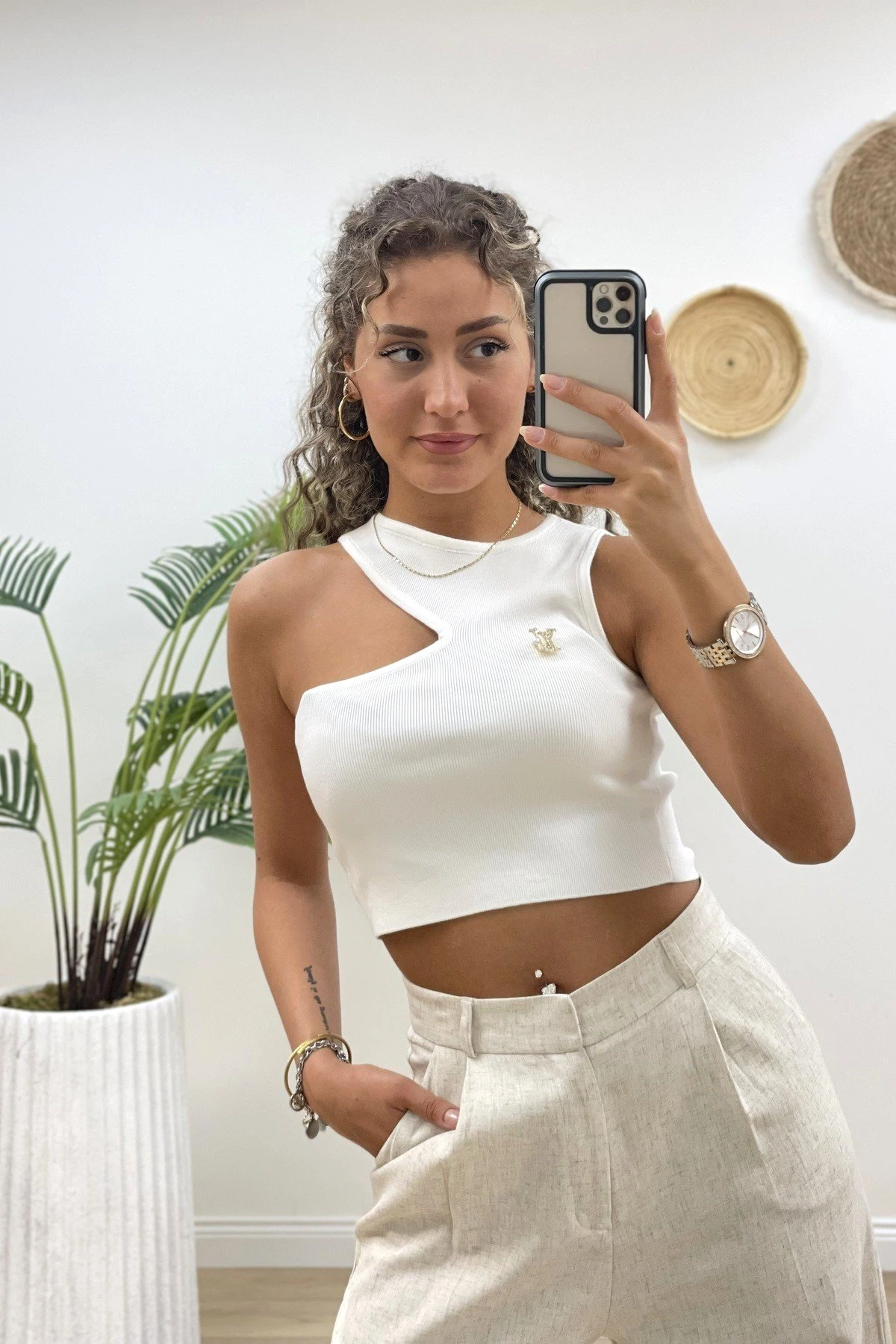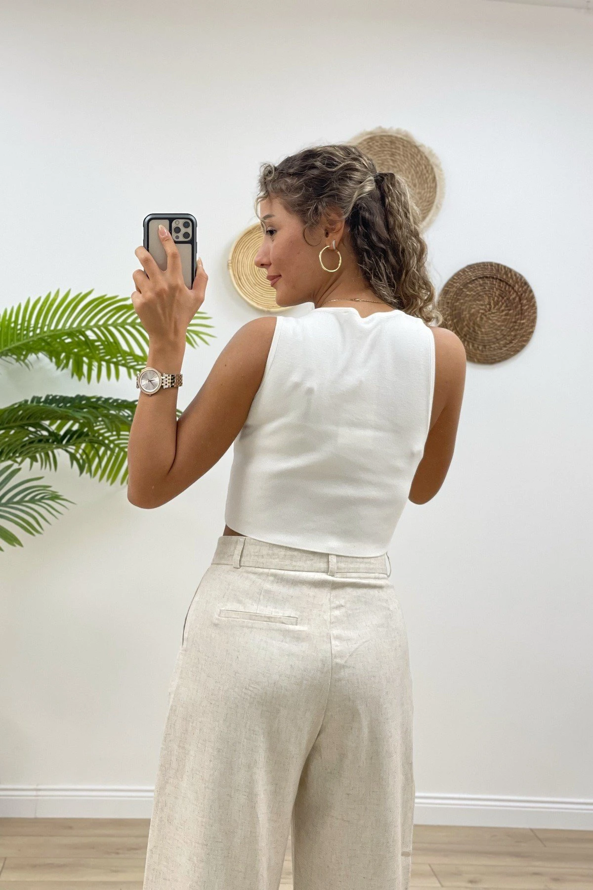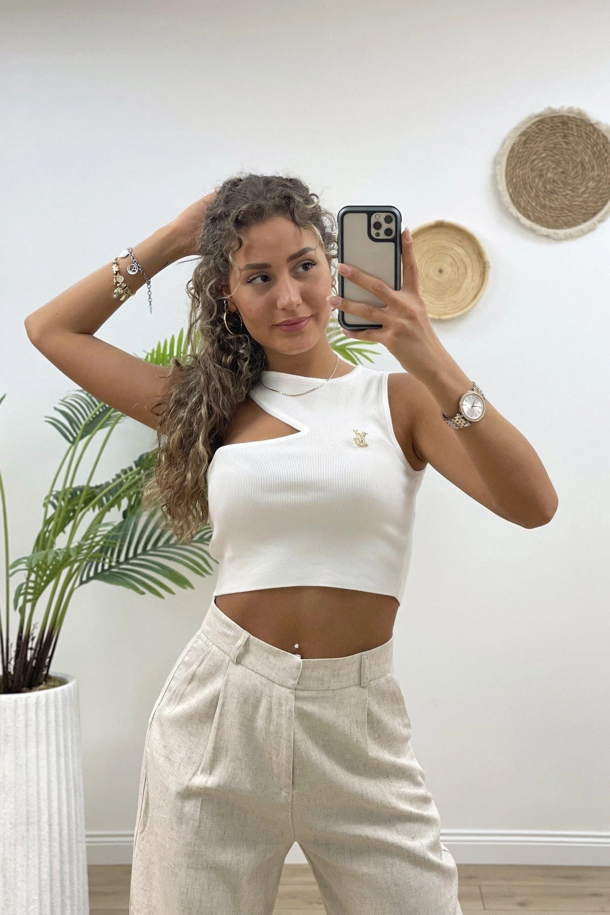 BİSİKLET YAKA ÖN DEKOLTE ATLET – EKRU