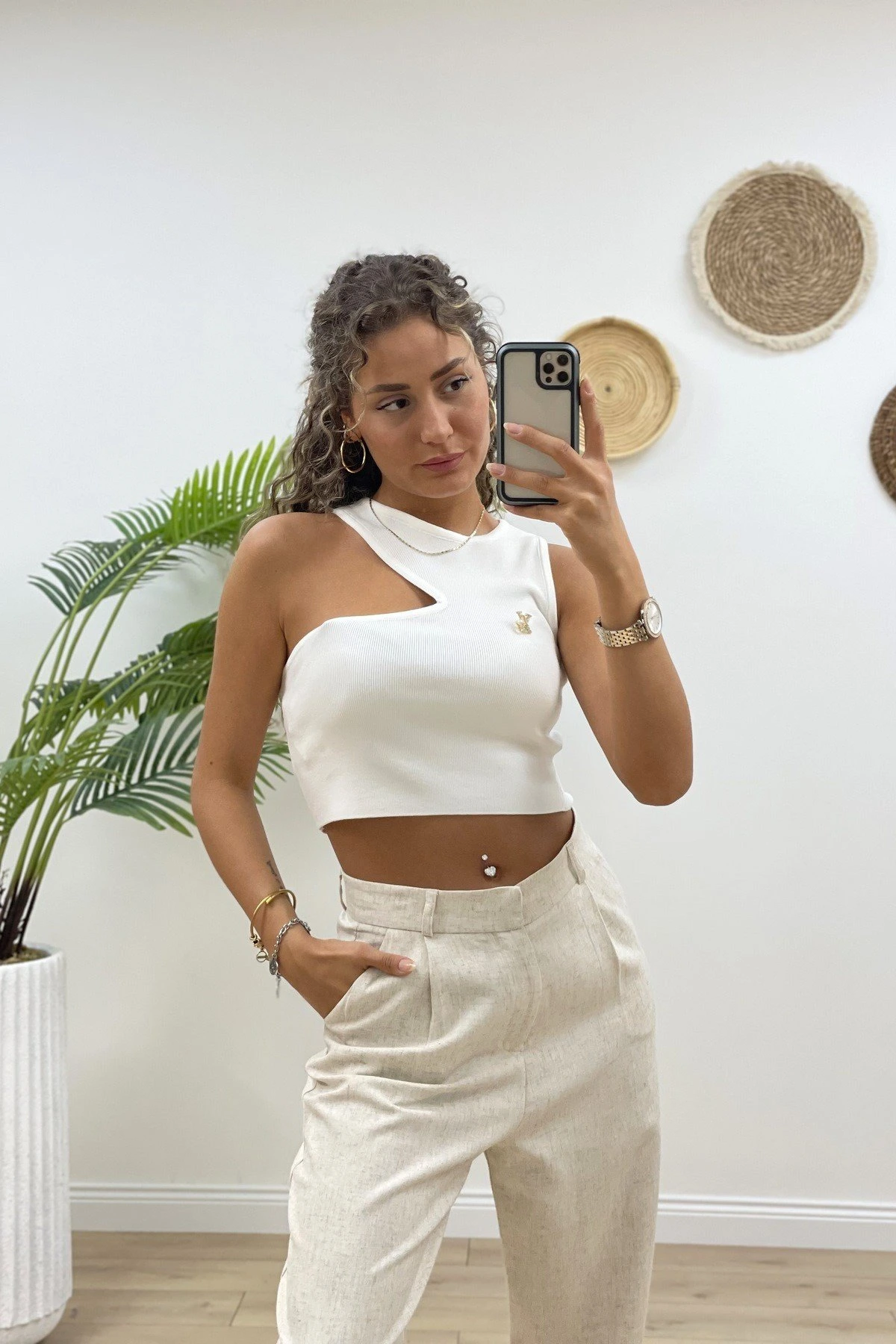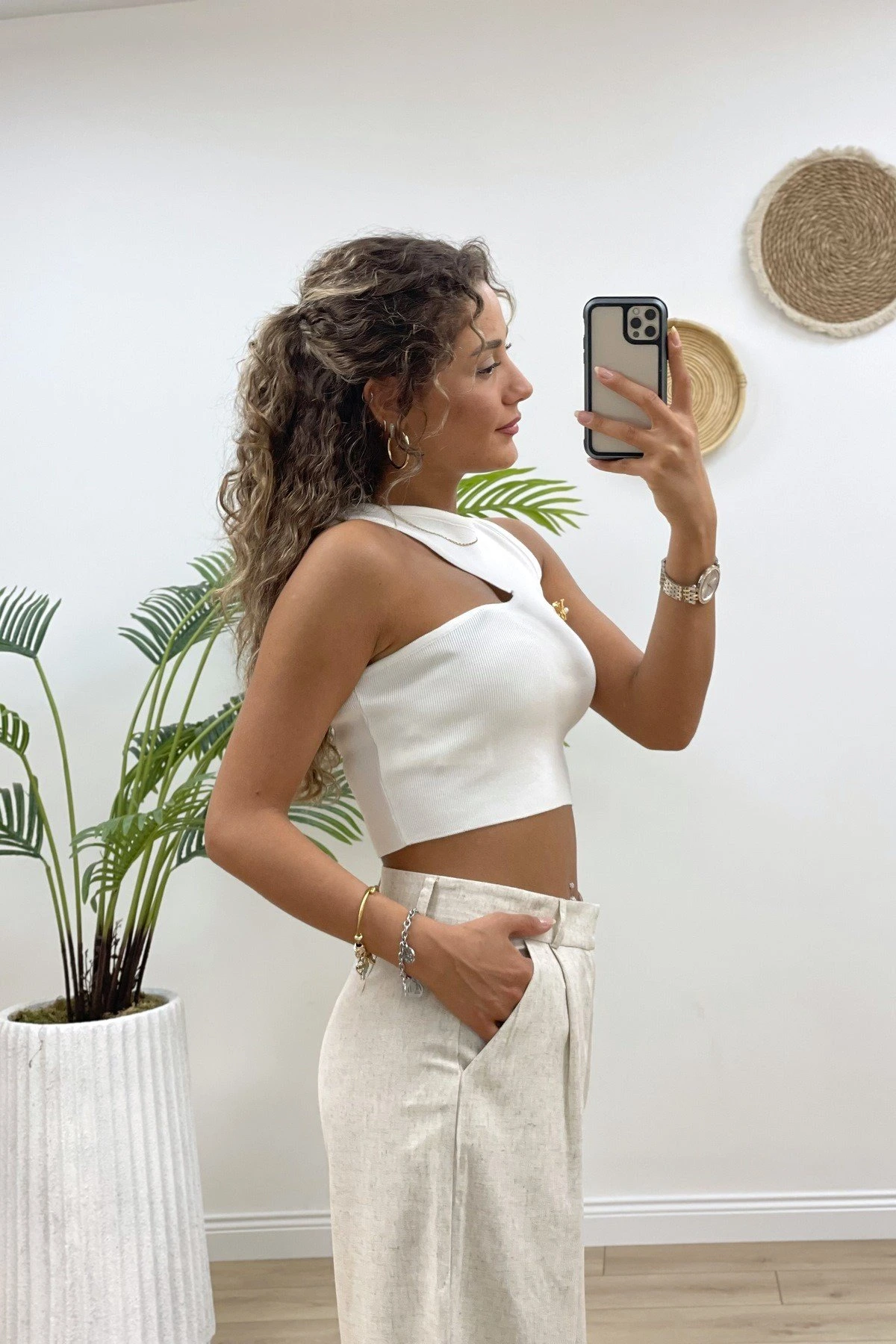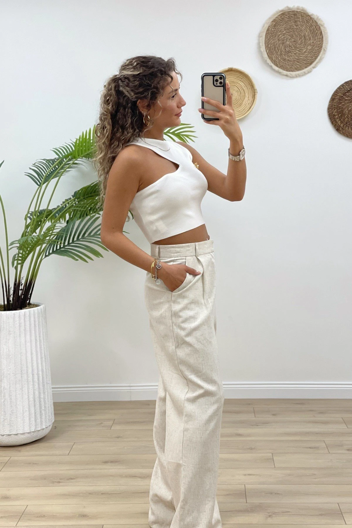 BİSİKLET YAKA ÖN DEKOLTE ATLET – EKRU