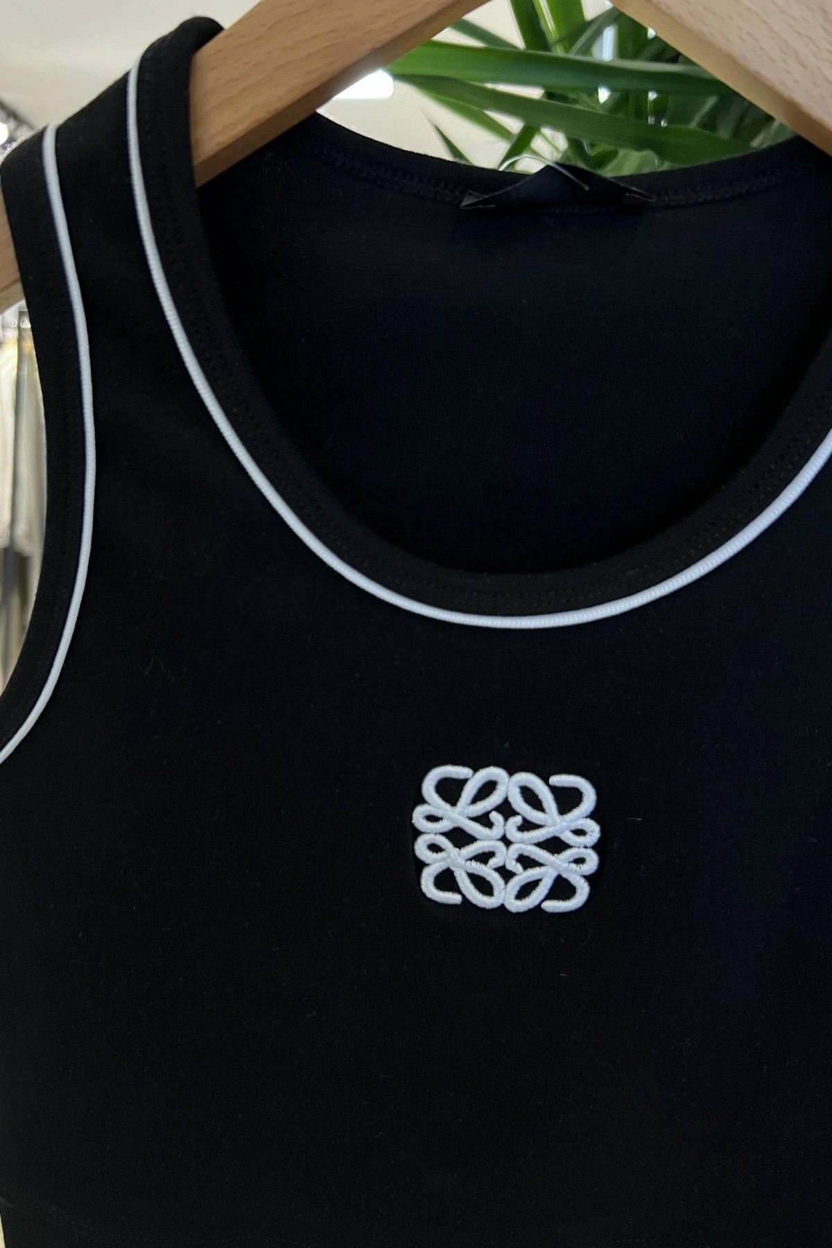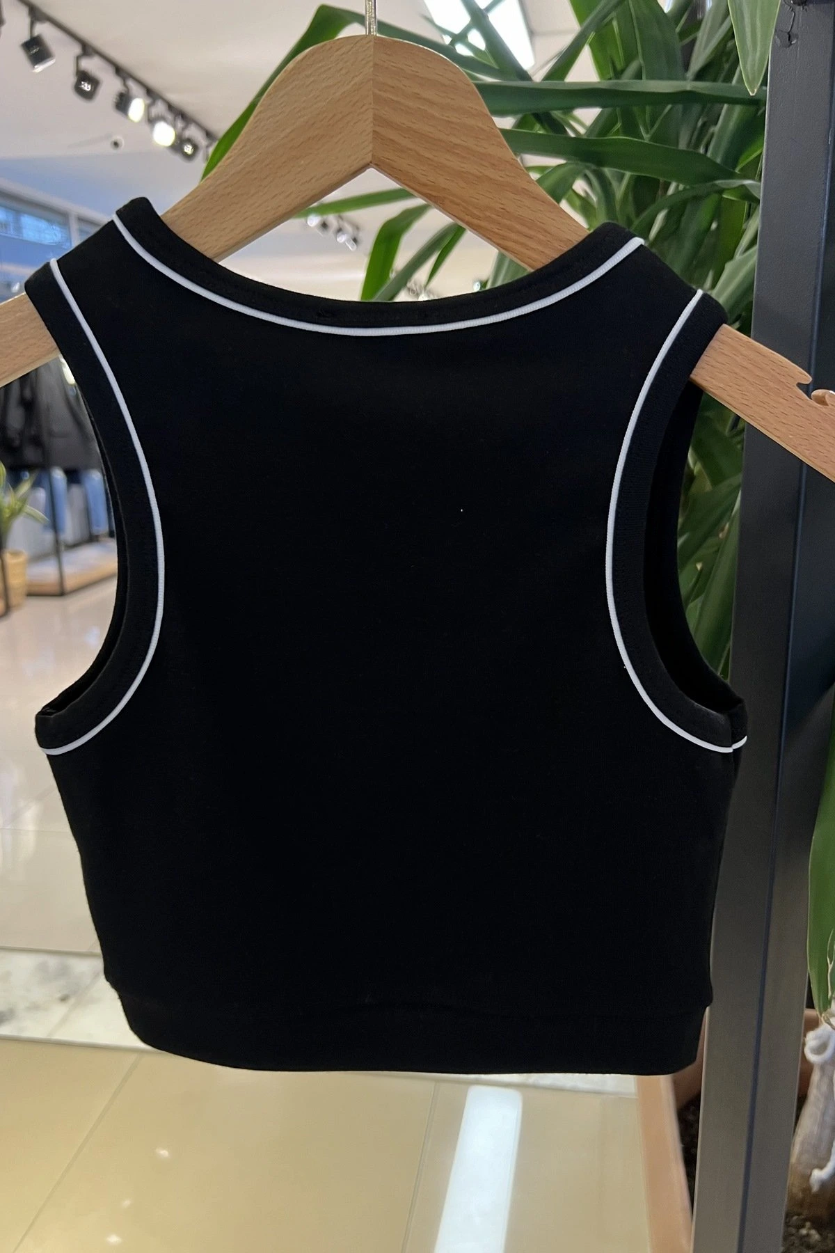 BİYE DETAY DESEN NAKIŞ PAMUK CROP ATLET – SİYAH