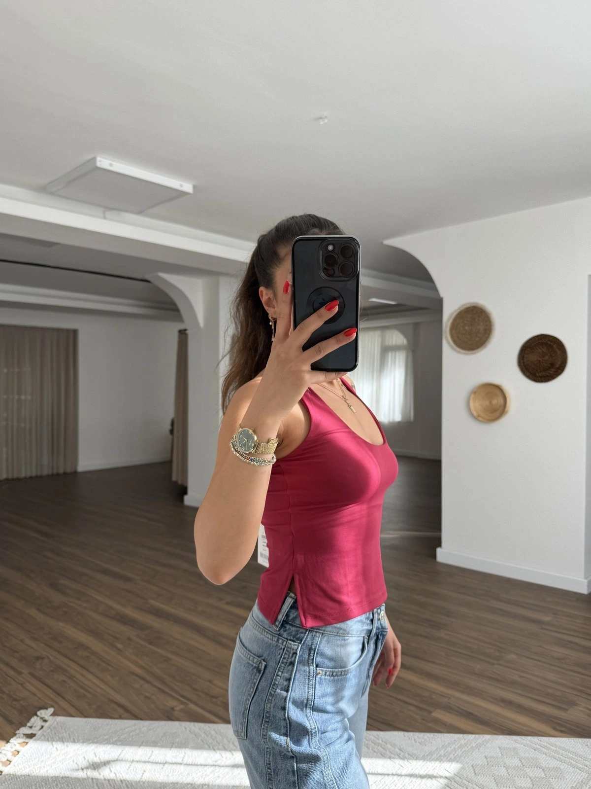 BOYUN ASKILI ETEK YAN YIRTMAÇ POLİAMİD ATLET – KOYU FUŞYA