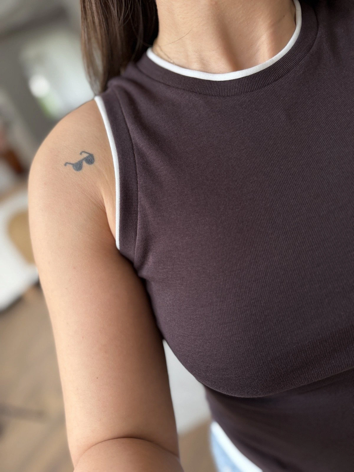 ÇİFT GÖRÜNÜMLÜ SIFIR KOL PAMUK ATLET – KOYU KAHVE