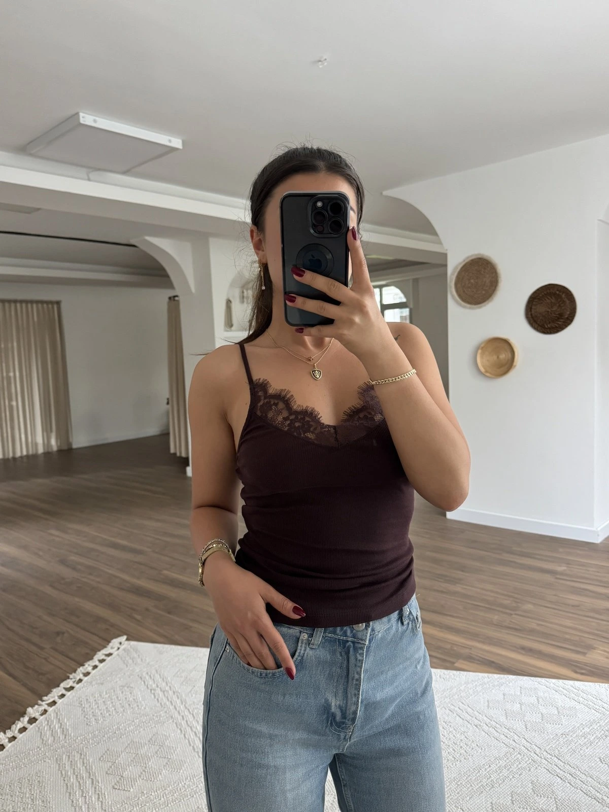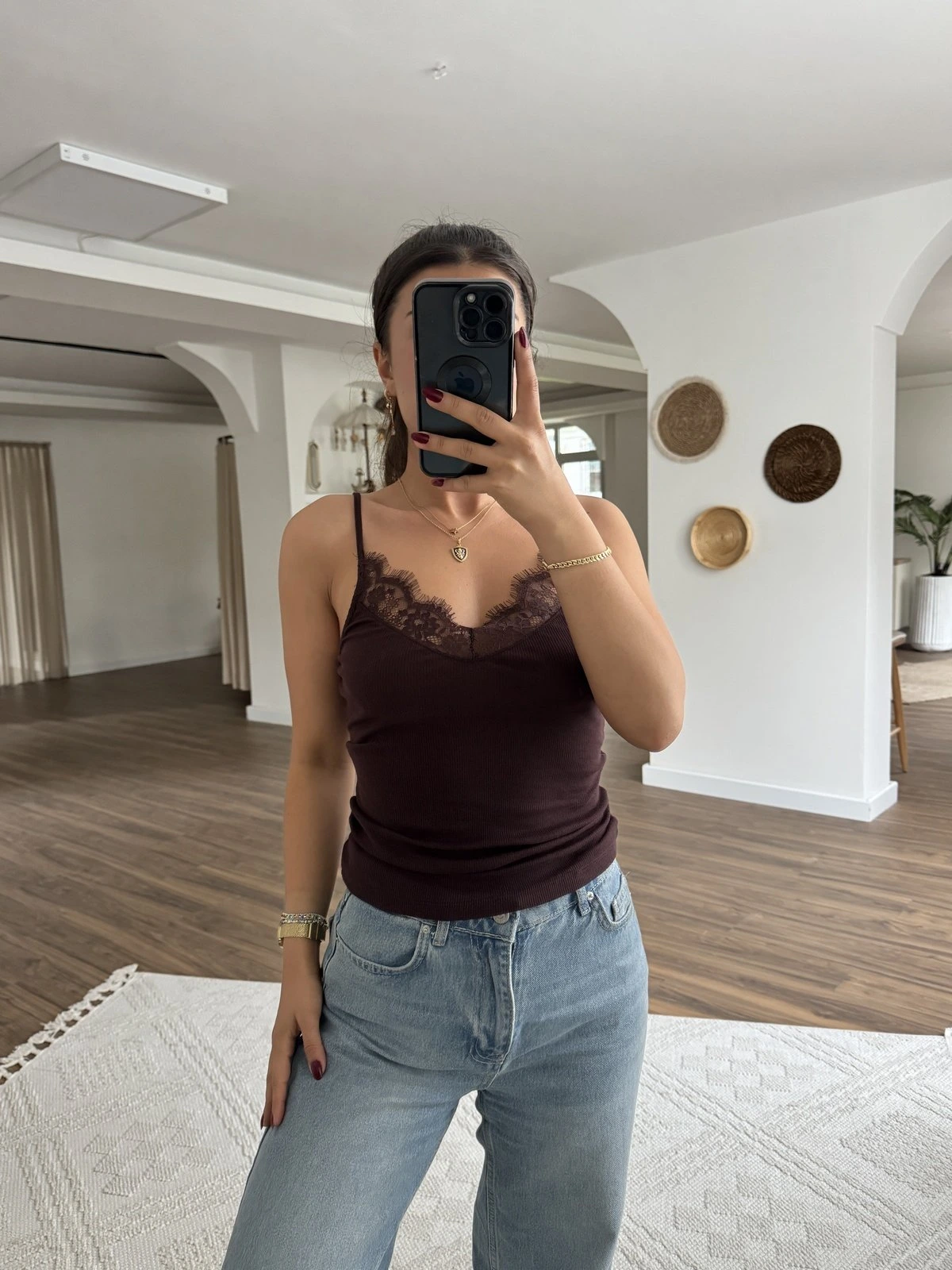 DANTEL ŞERİT ASKILI PAMUK ATLET – KAHVE