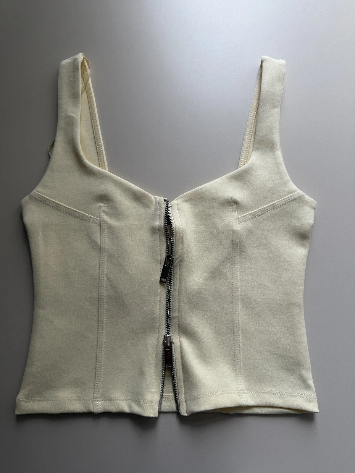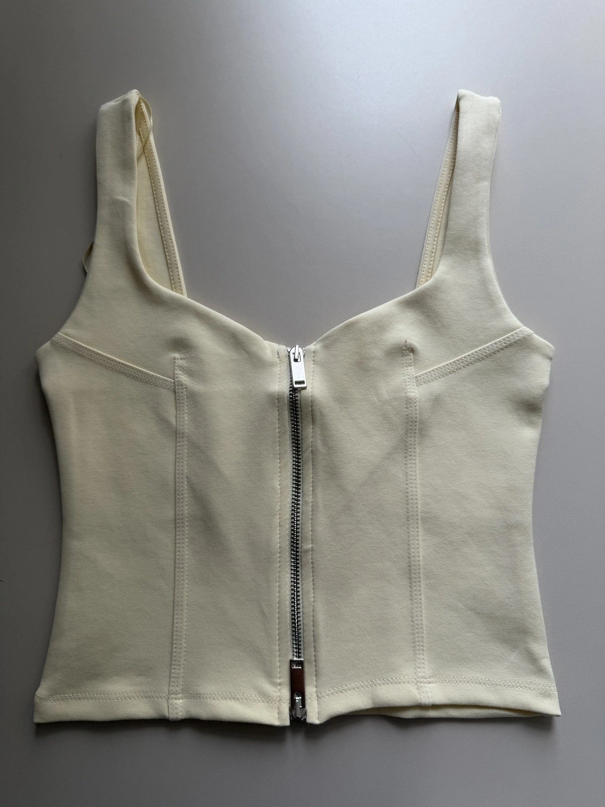 FERMUARLI DİKİŞ DETAY KISA PAMUK ATLET. – AÇIK SARI