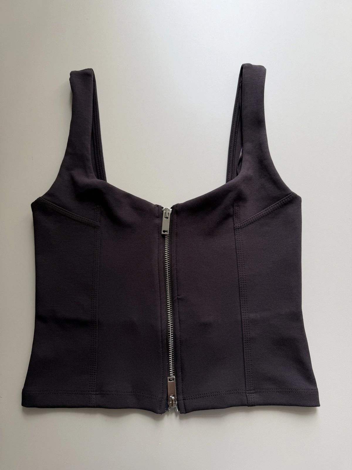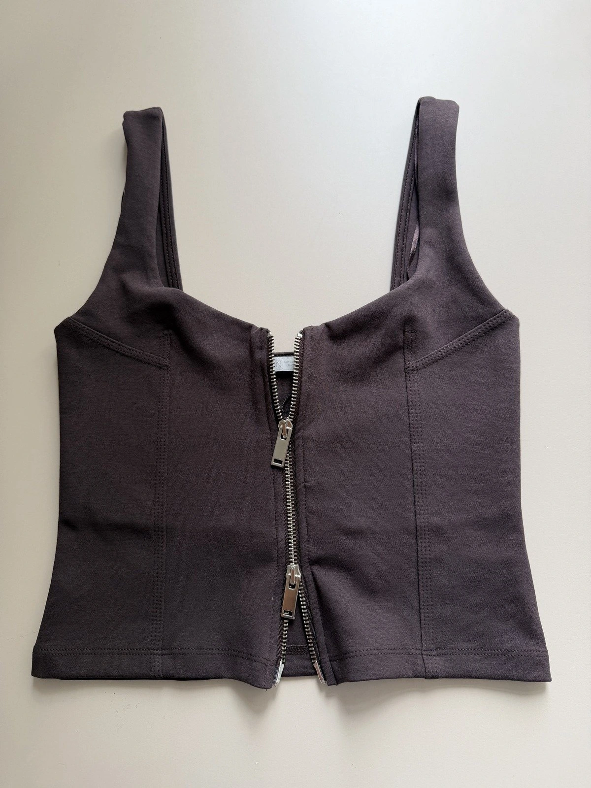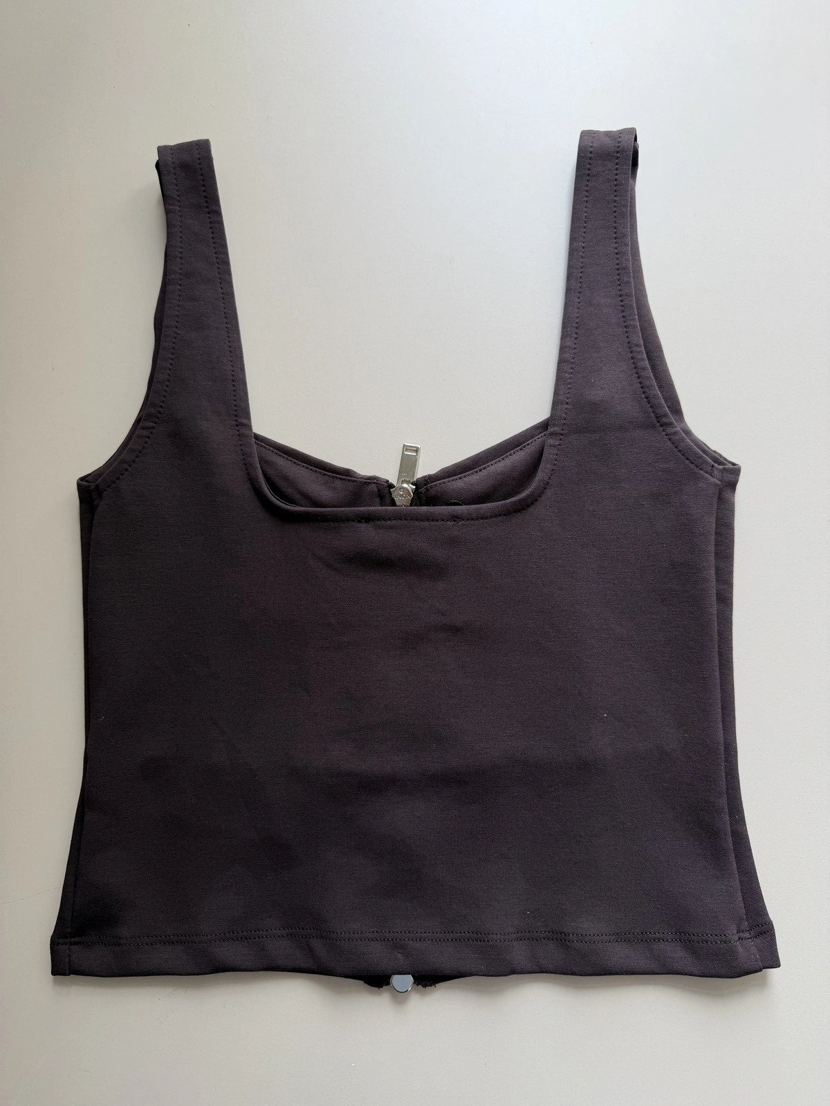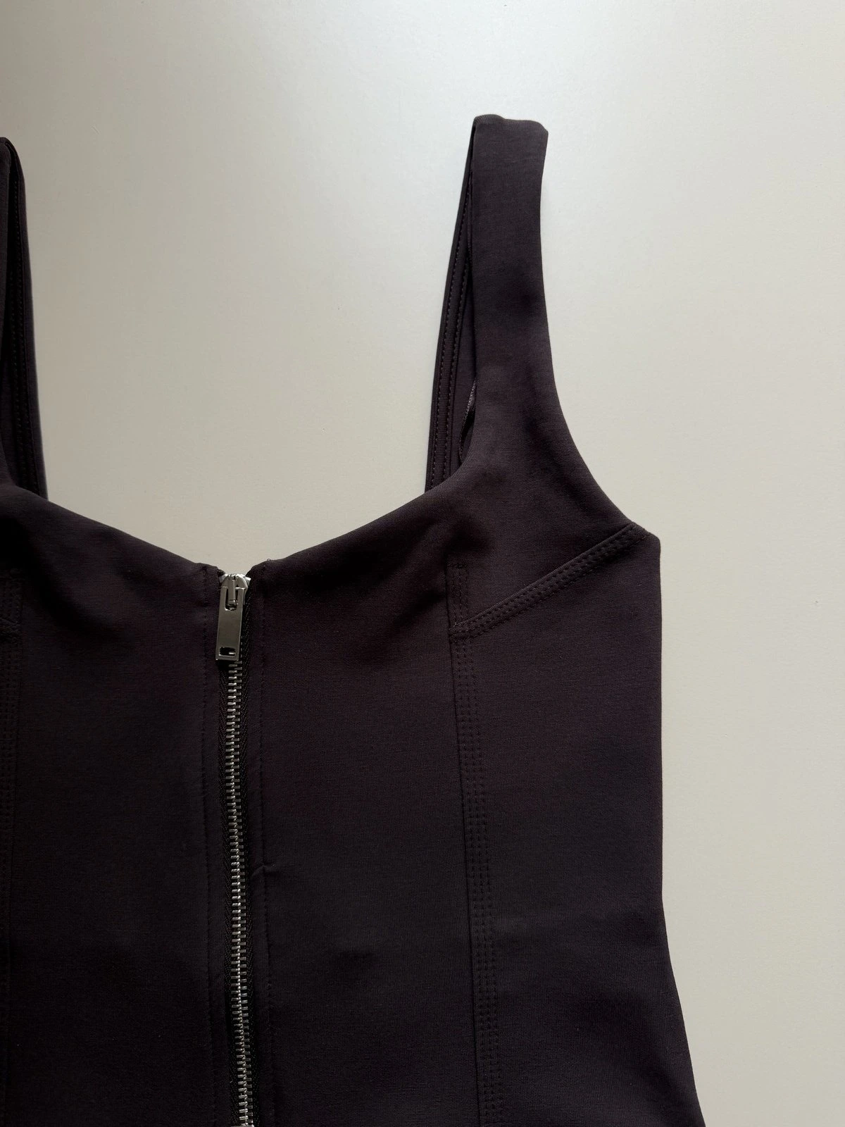 FERMUARLI DİKİŞ DETAY KISA PAMUK ATLET. – KOYU KAHVE