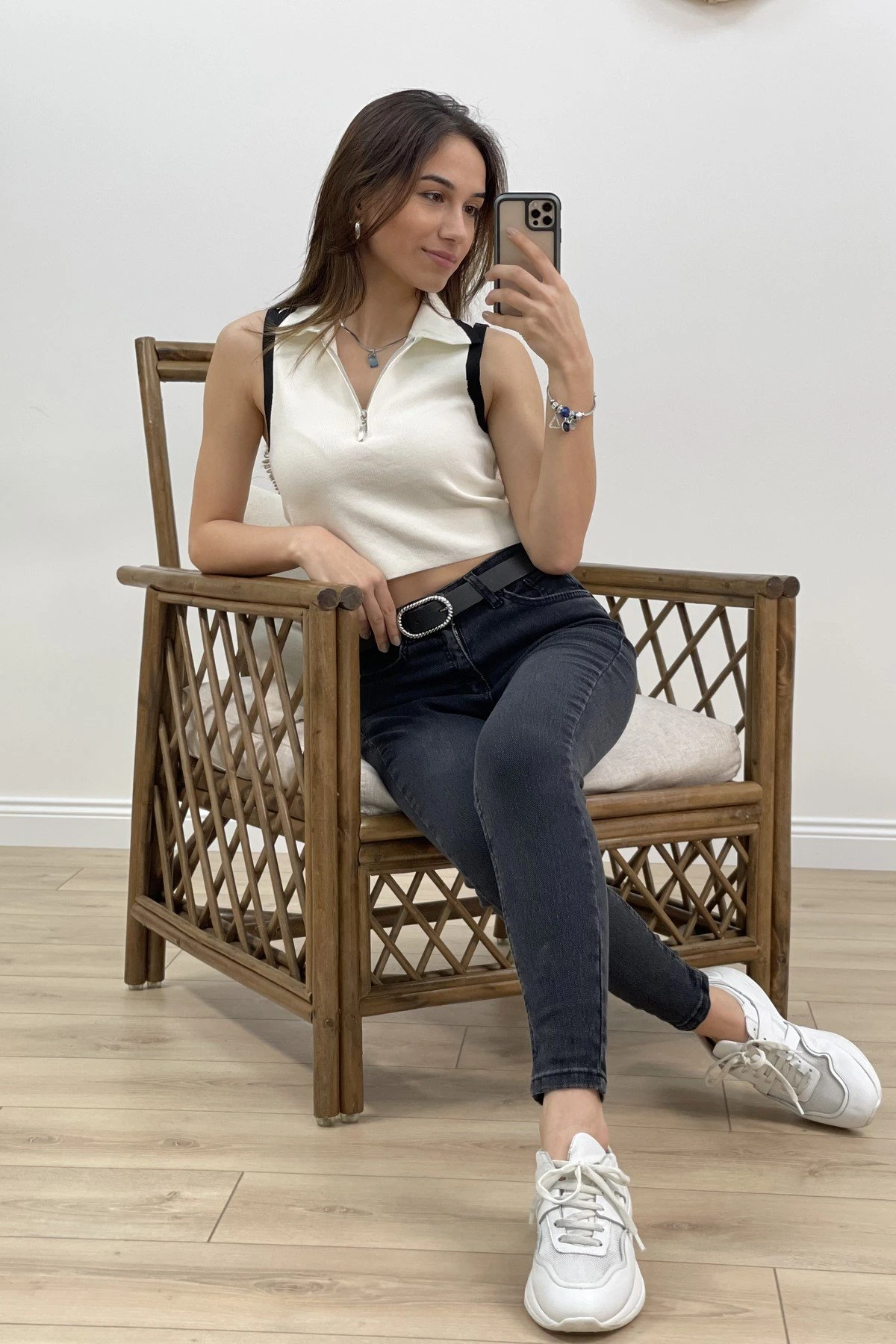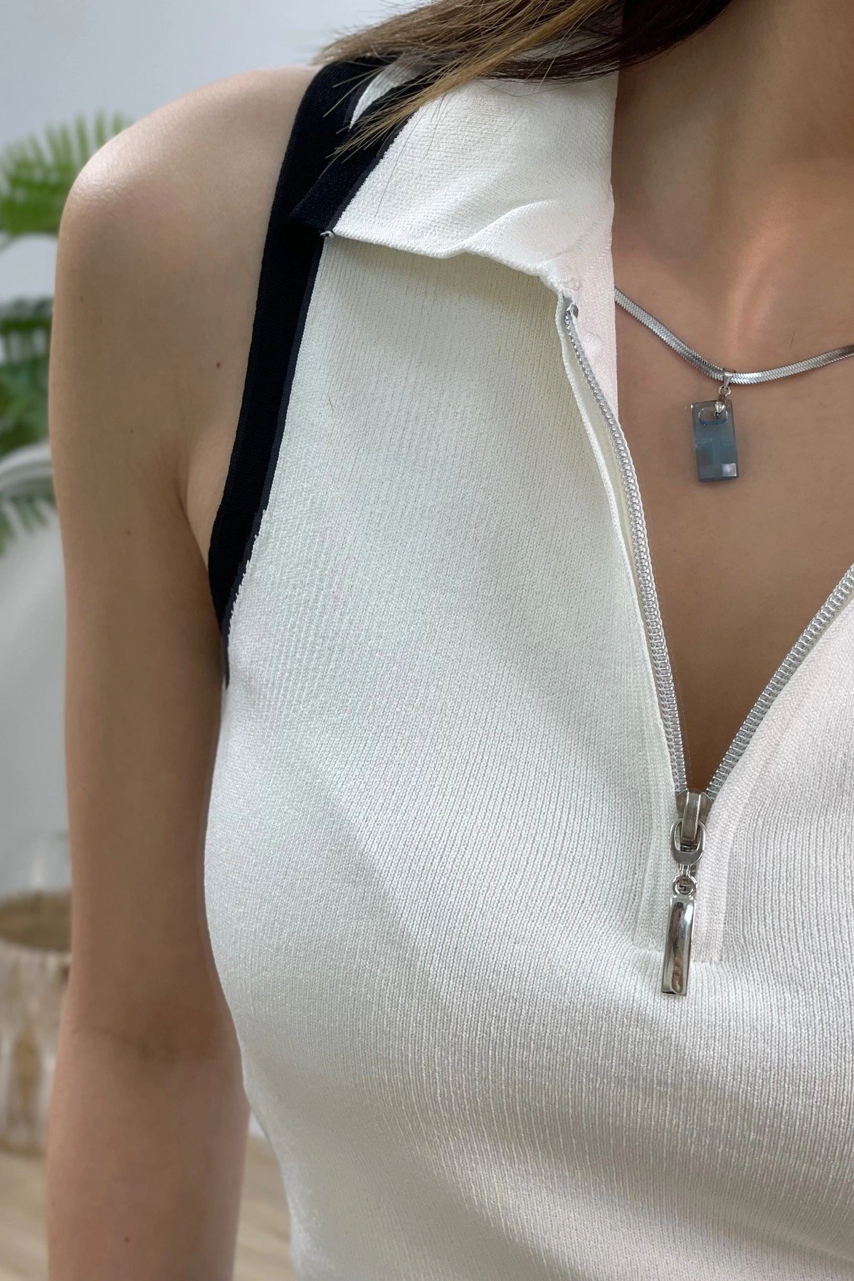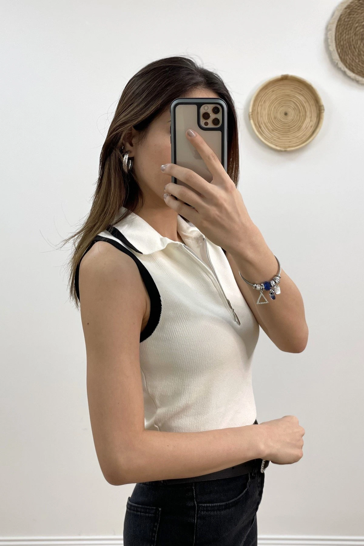 FERMUARLI POLO YAKA TRİKO ATLET – KREM SİYAH