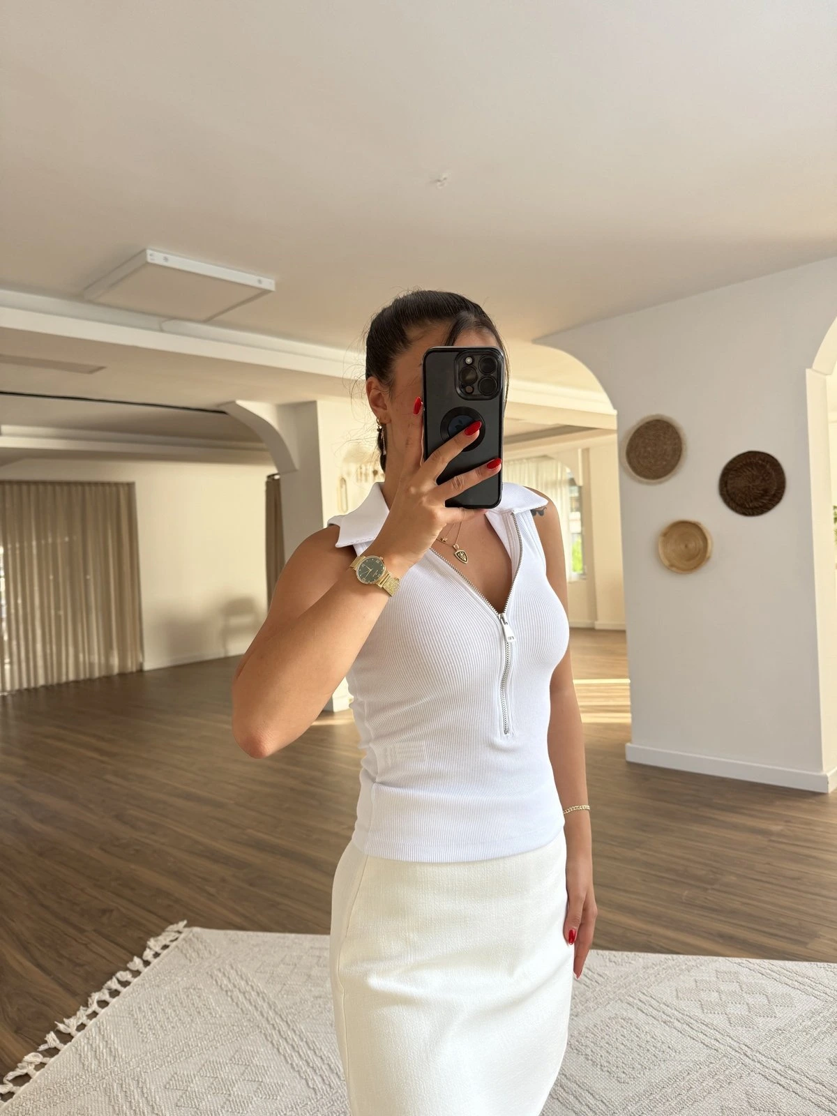 FERMUARLI YAKALI FİTİLLİ ATLET – BEYAZ
