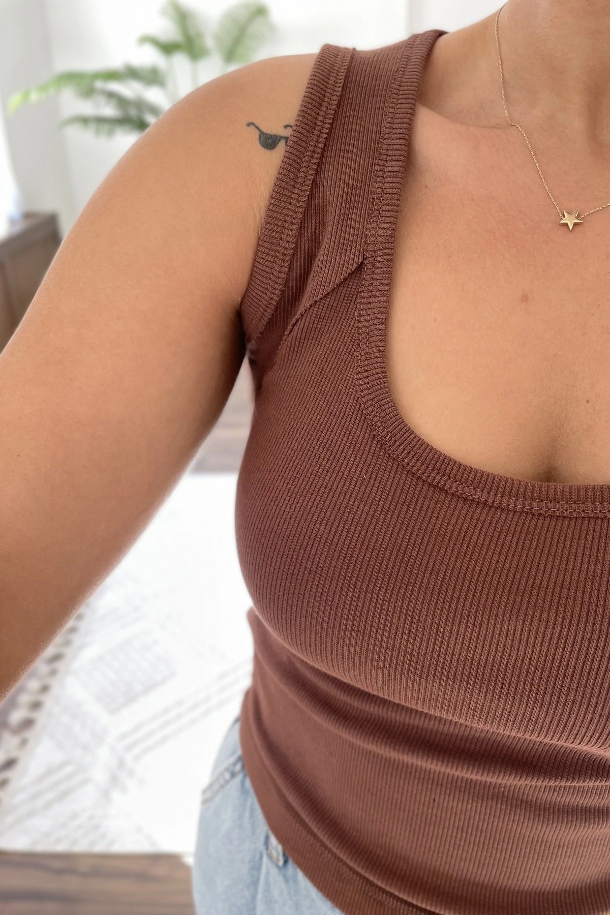 FİTİLLİ DİKİŞ DETAY PAMUK ATLET – ÇİKOLATA