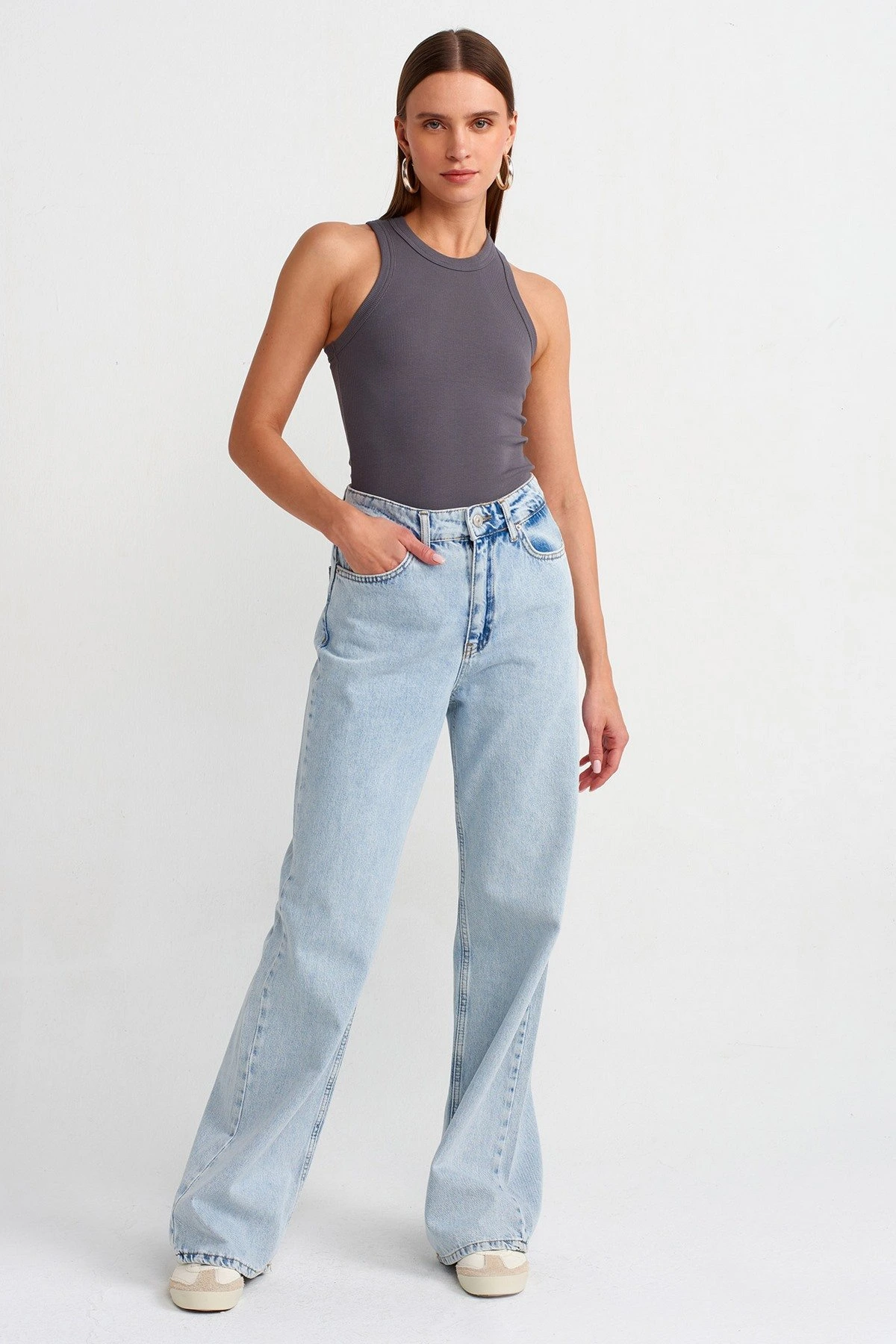 HALTER YAKA FİTİLLİ PAMUK ATLET – FÜME