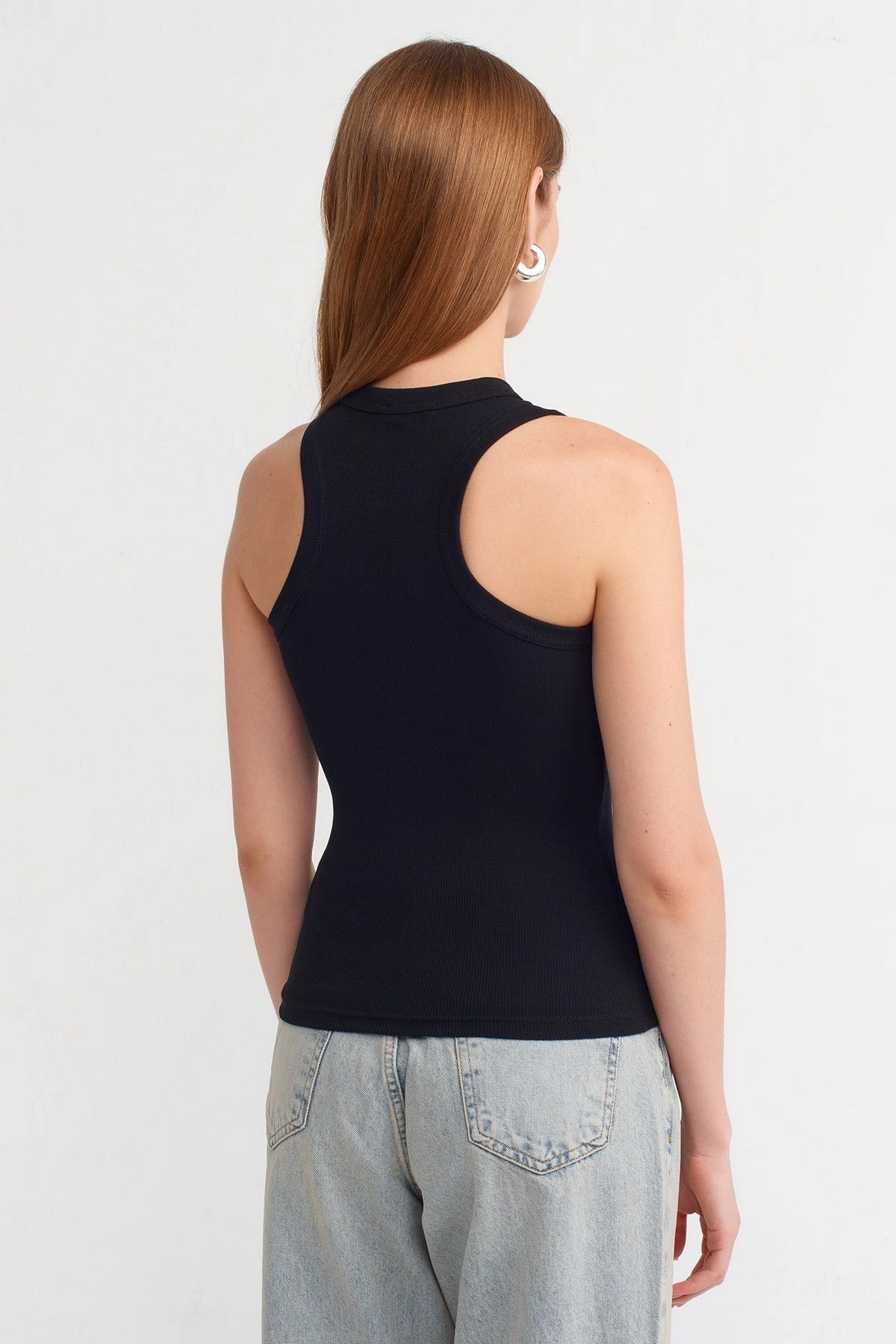 HALTER YAKA FİTİLLİ PAMUK ATLET – SİYAH