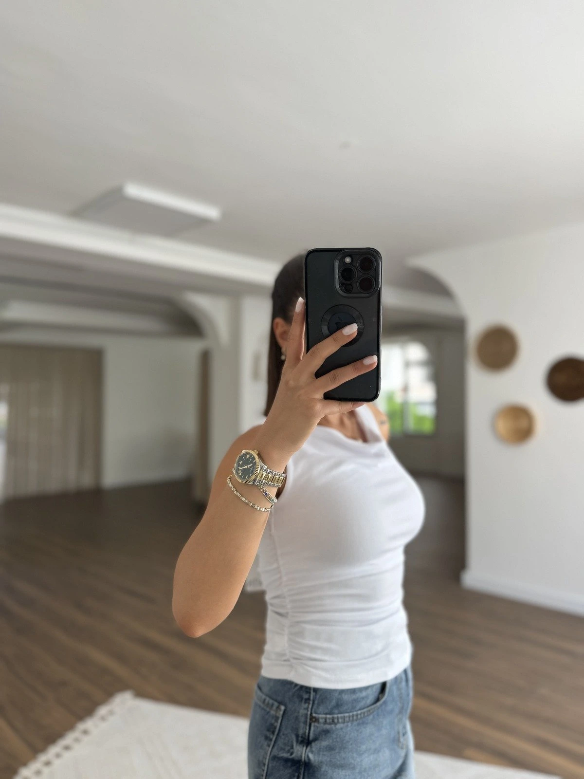 İKİ YAN BÜZGÜLÜ KAYIK YAKA VİSKON ATLET – BEYAZ
