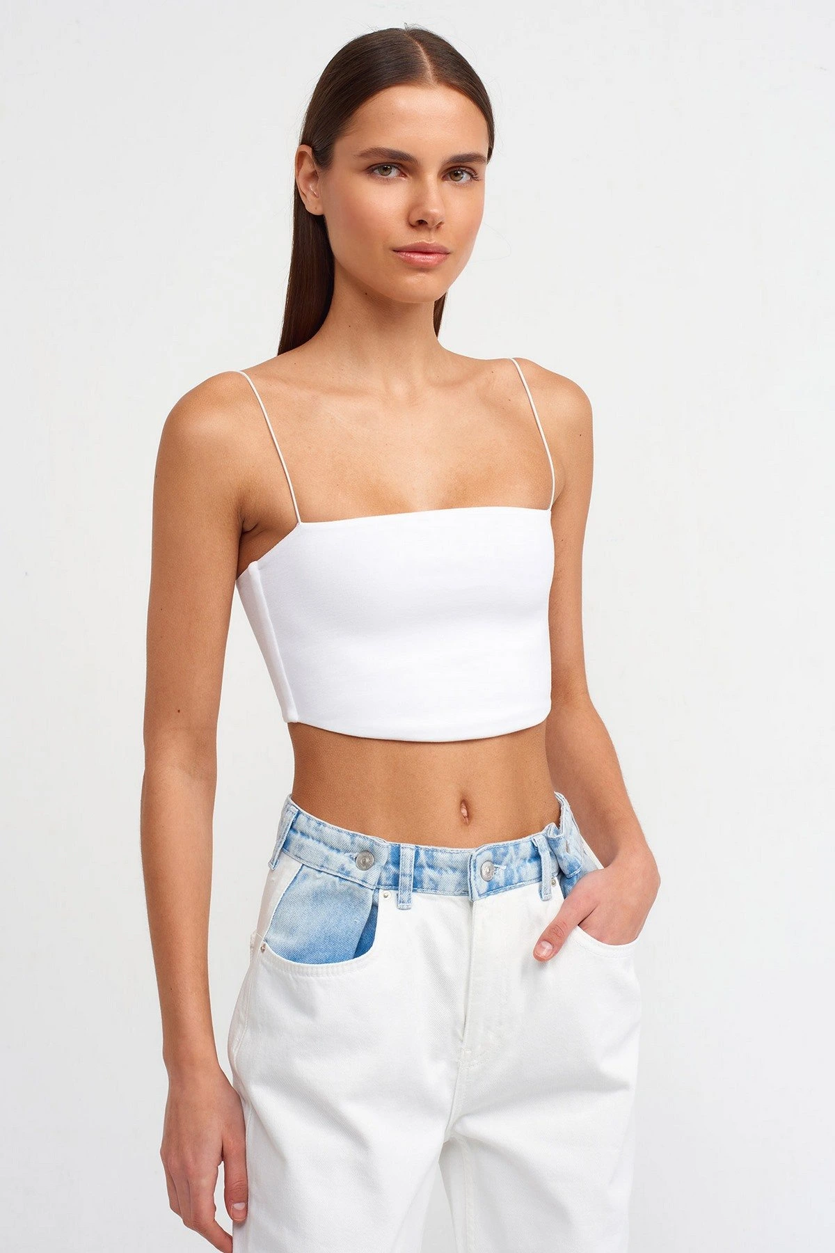 İP ASKI PAMUK CROP TOP – BEYAZ
