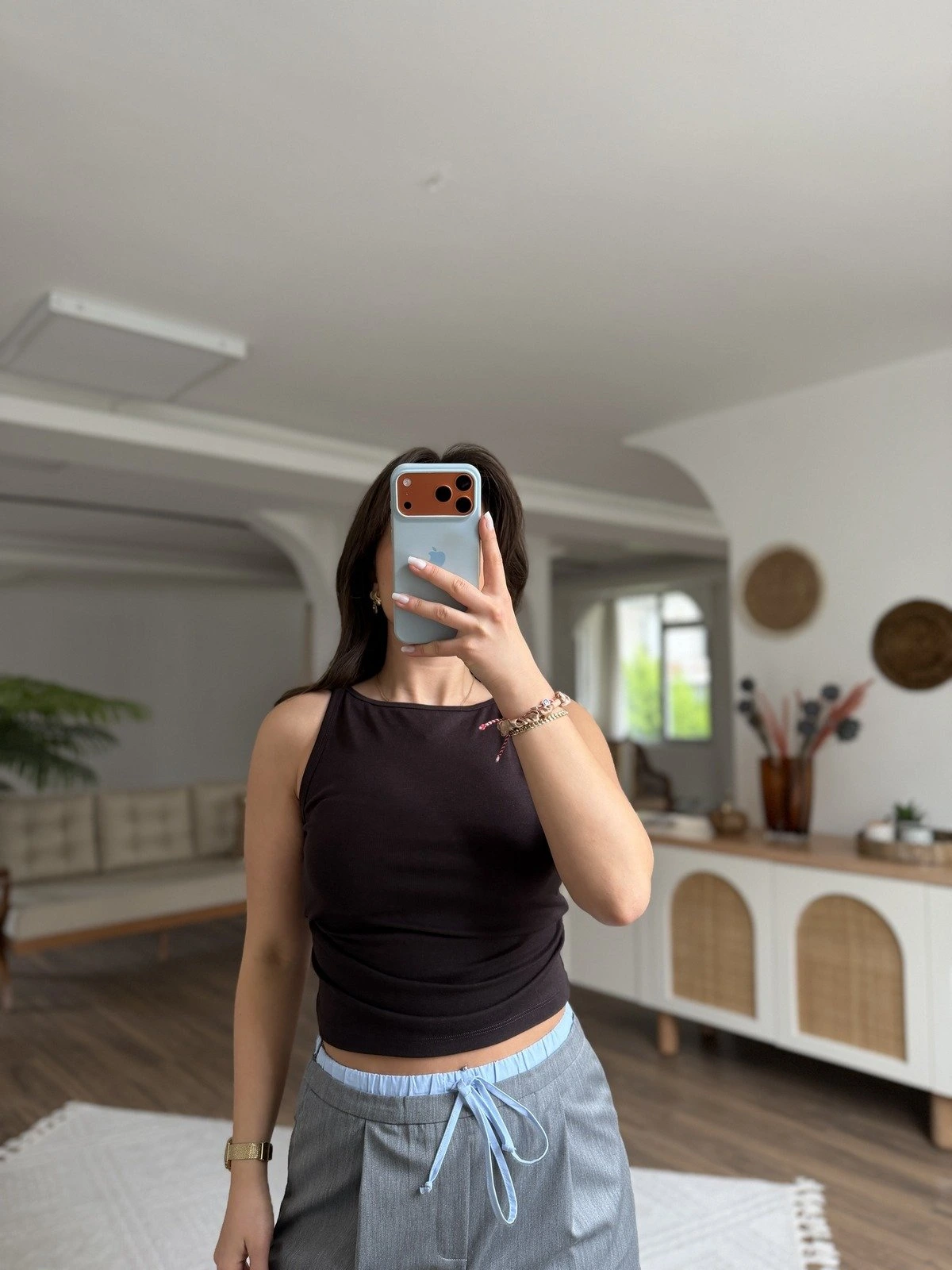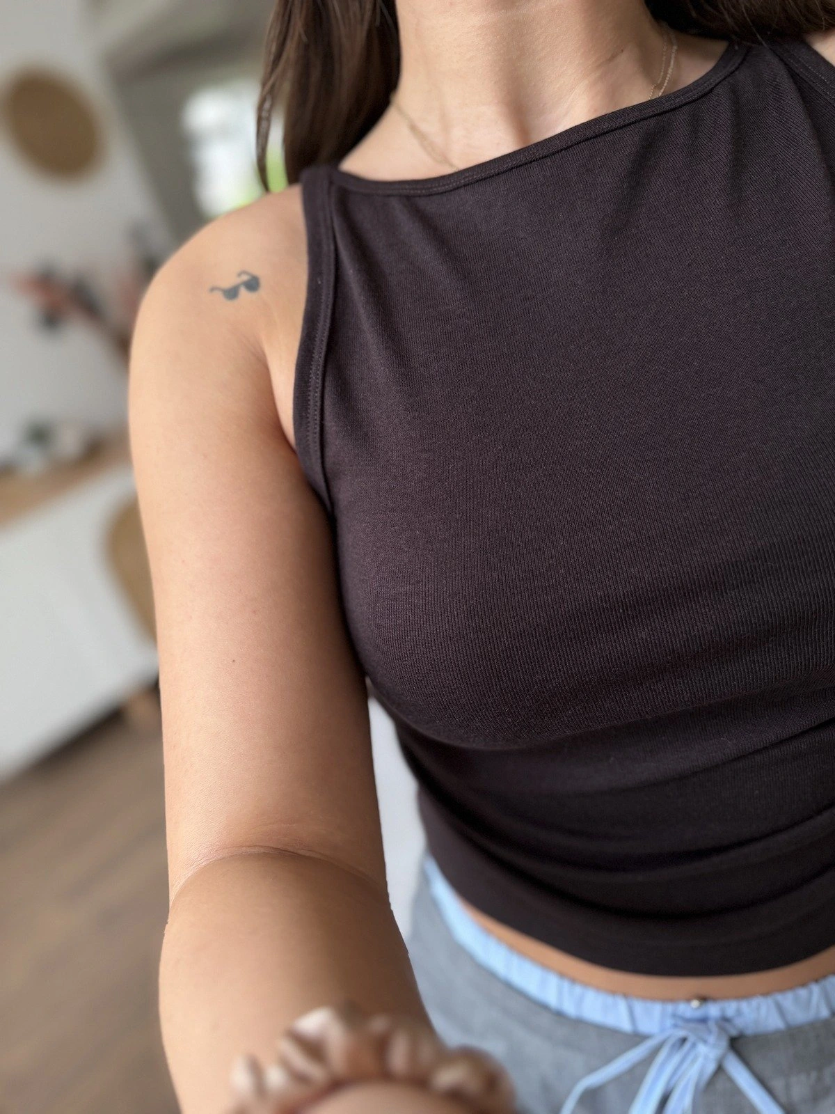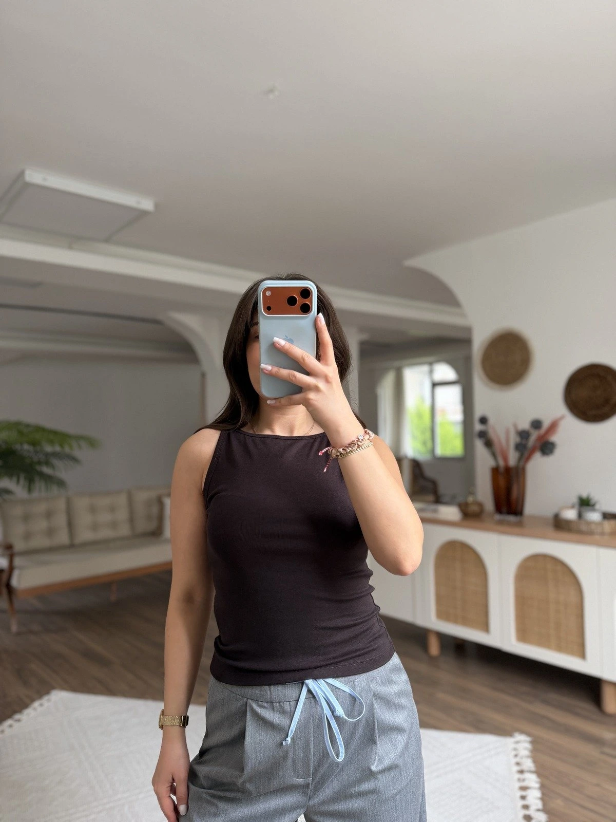 KAYIK HALTER YAKA PAMUK MODAL ATLET – KOYU KAHVE