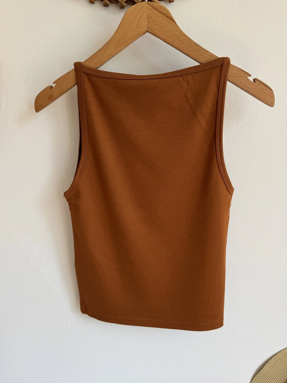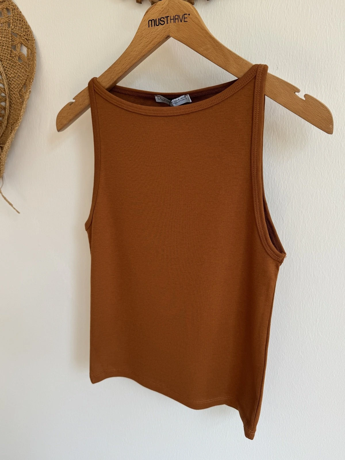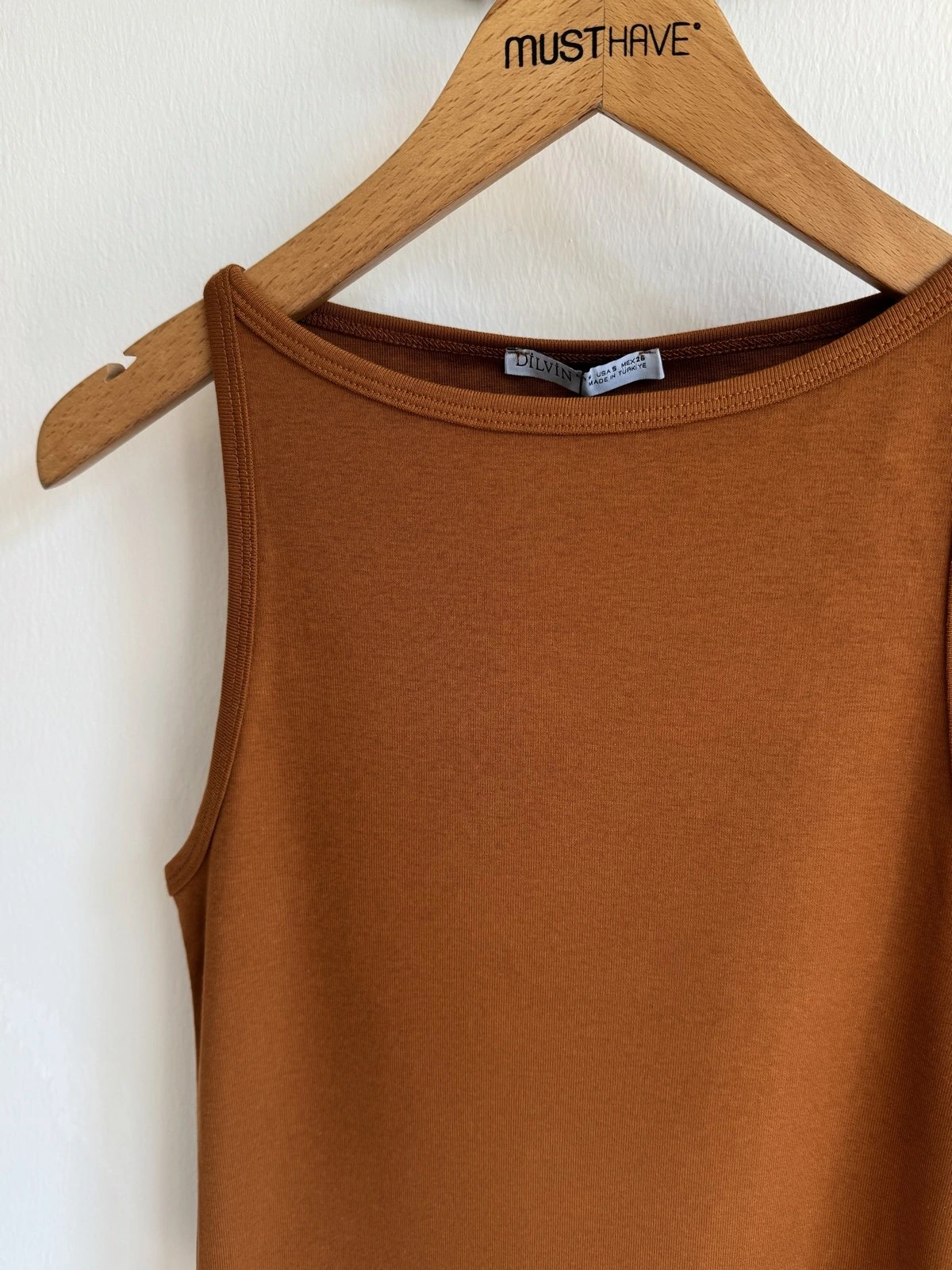 KAYIK HALTER YAKA PAMUK MODAL ATLET – KOYU KİREMİT