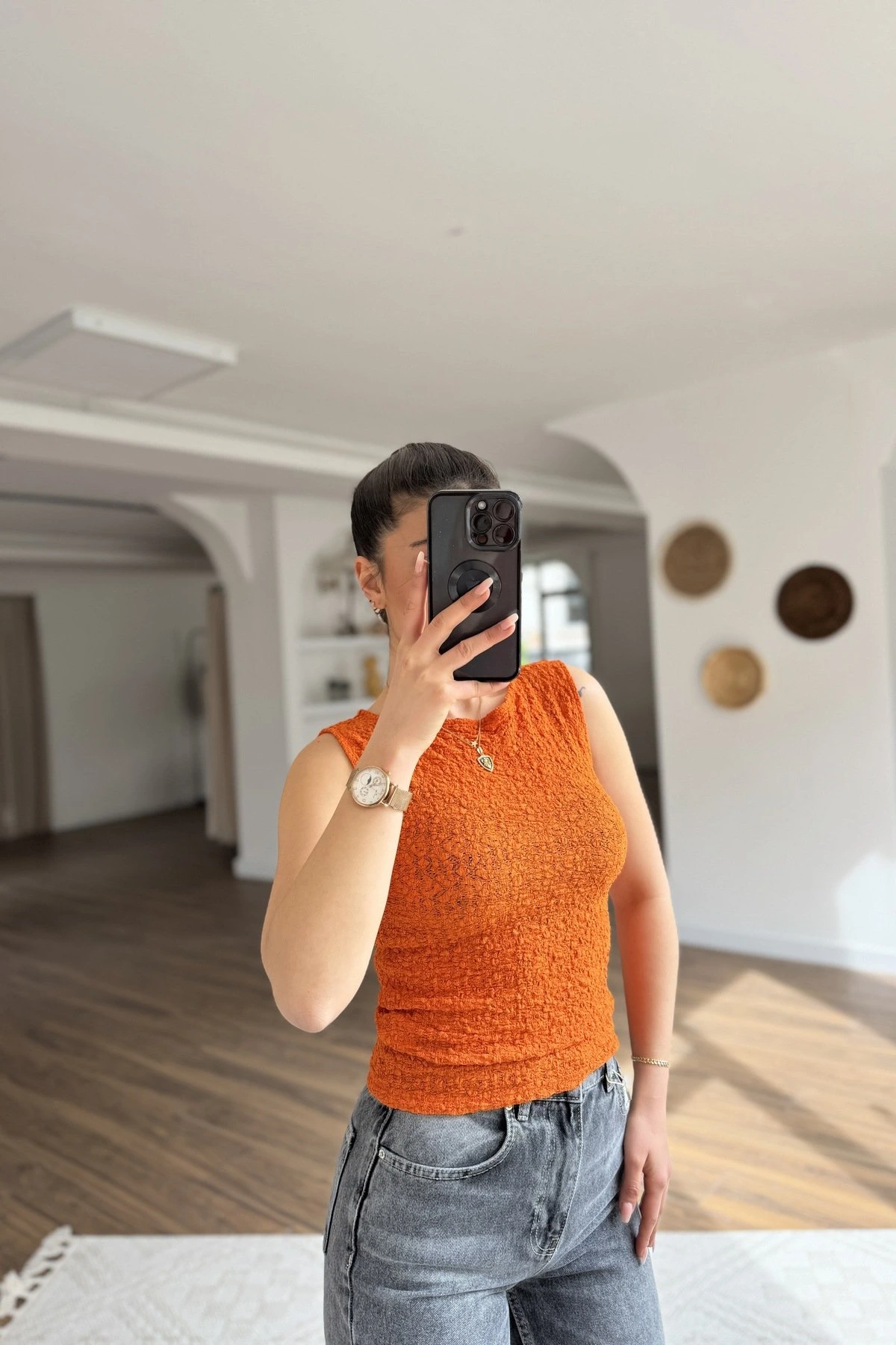 KAYIK YAKA BÜZGÜ DANTEL LİKRALI ATLET – KOYU ORANGE