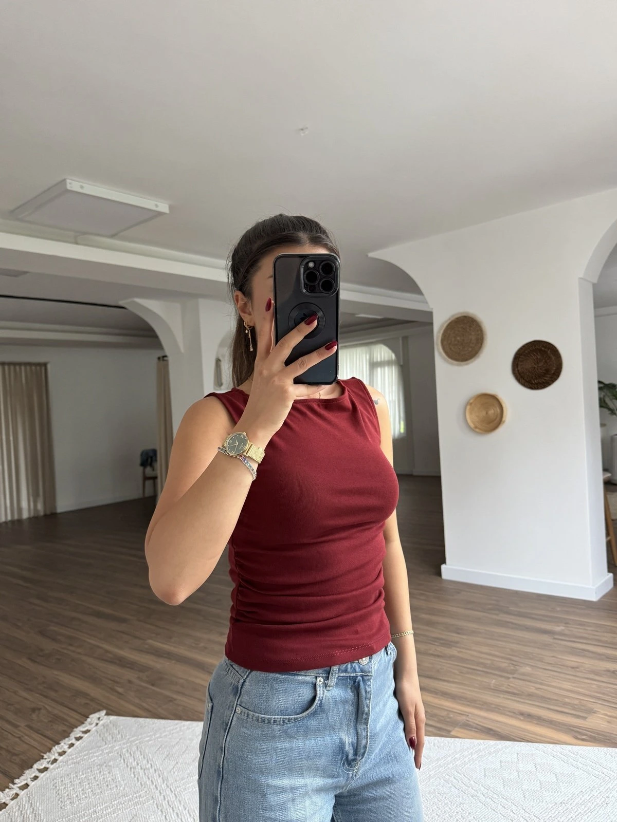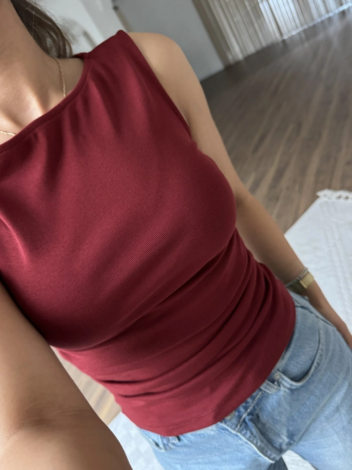 KAYIK YAKA YAN BÜZGÜ PAMUK LİKRALI ATLET – AÇIK BORDO