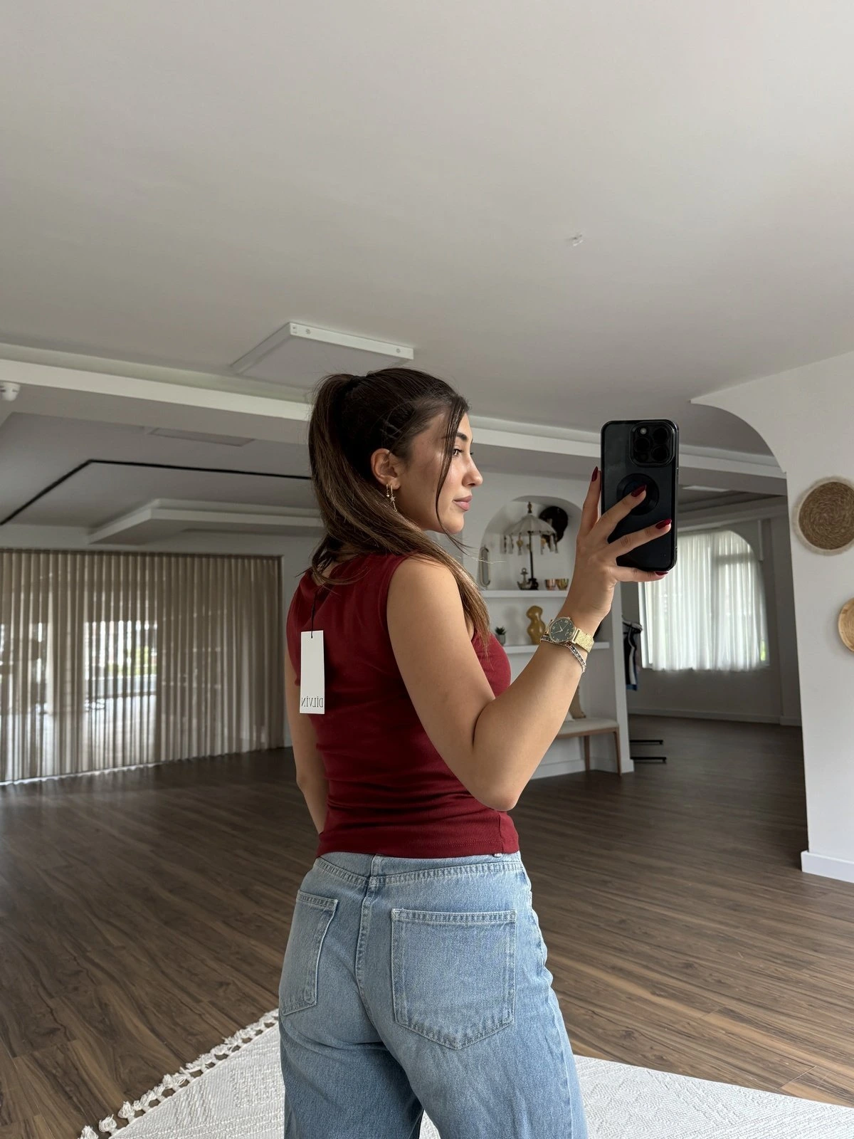 Modelin Üzerindeki Ürün bedeni instagramda story (hikayeler) de belirtilmektedir.