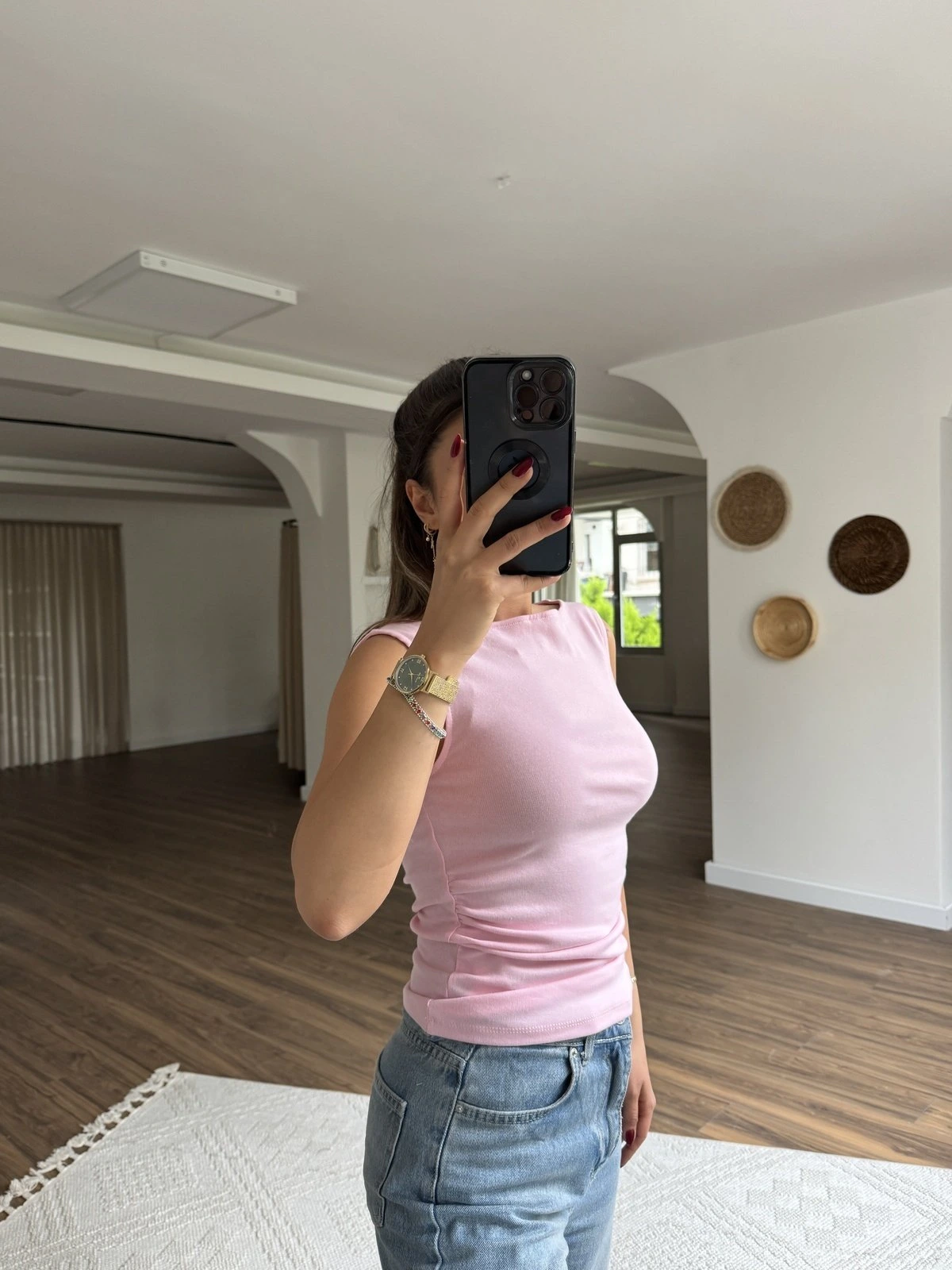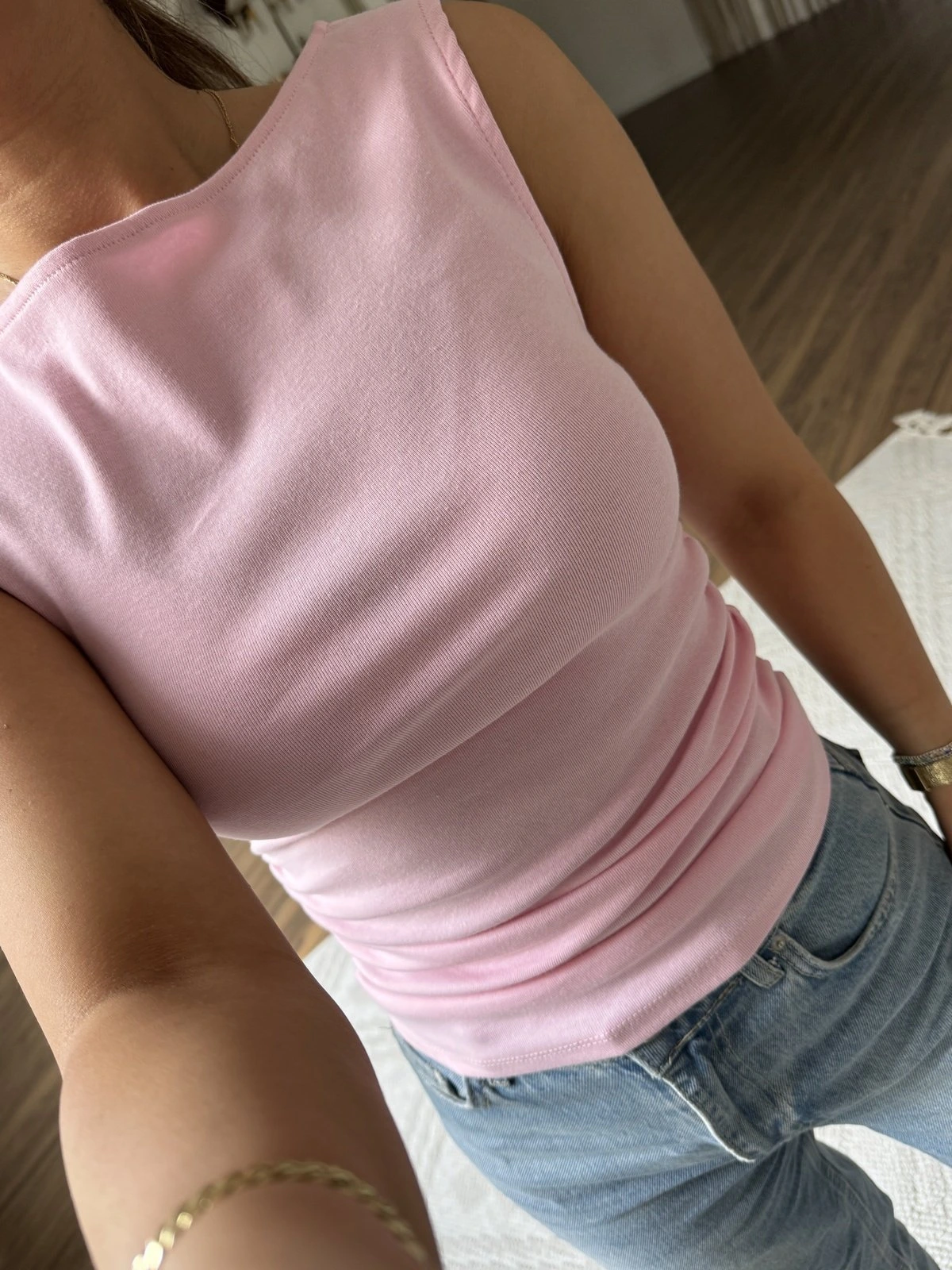 KAYIK YAKA YAN BÜZGÜ PAMUK LİKRALI ATLET – TOZ PEMBE