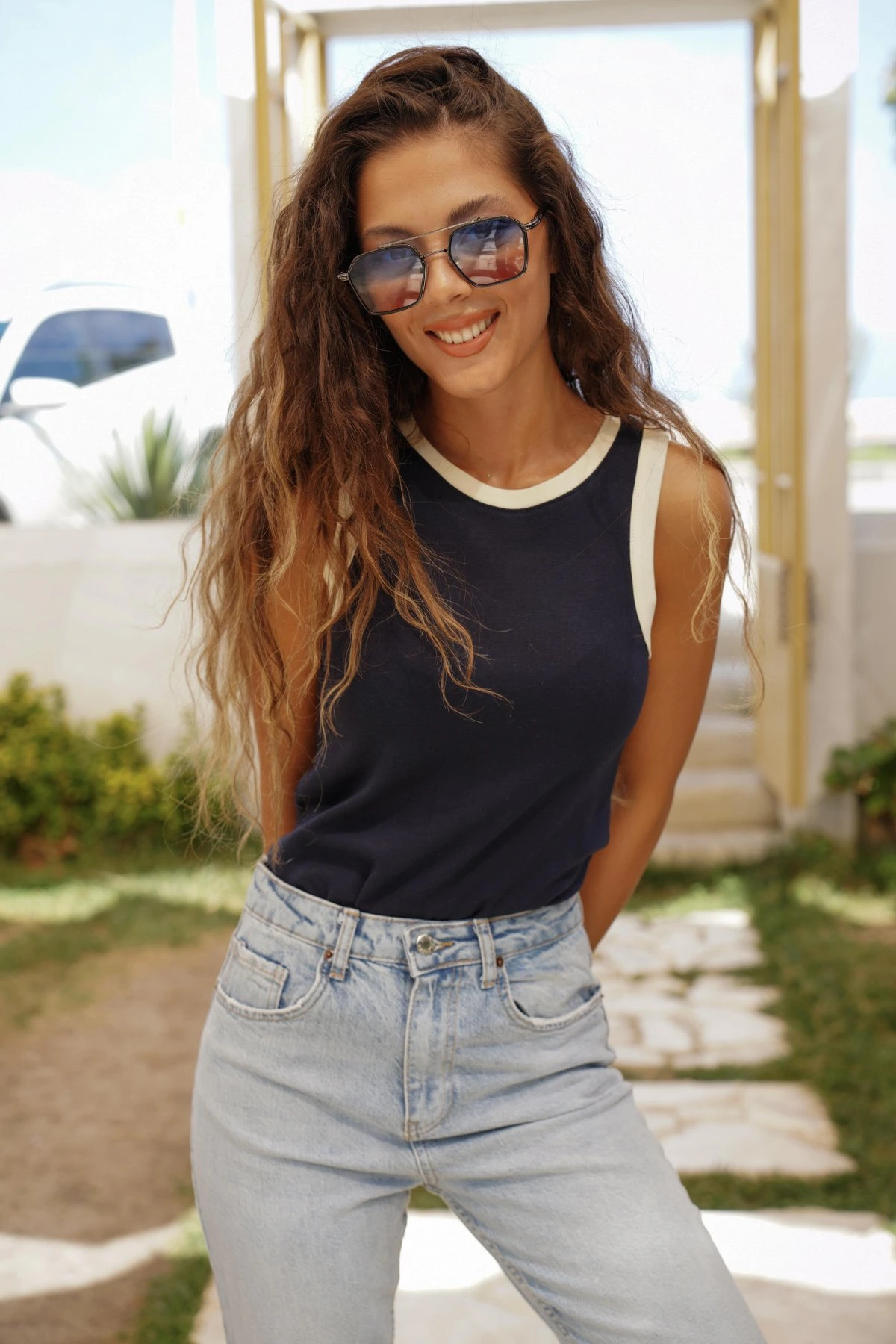 KOLSUZ KONTRAST ATLET – LACİVERT