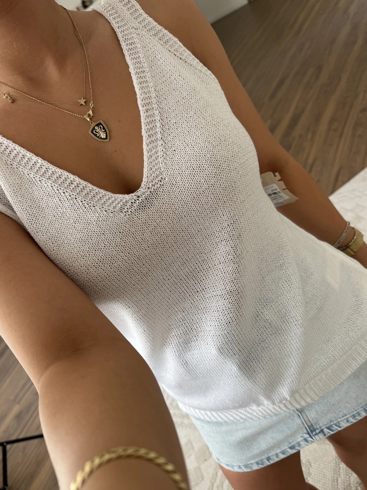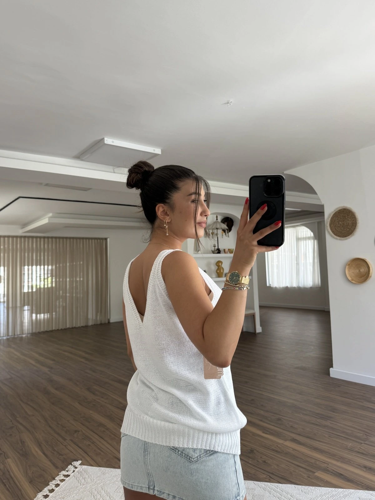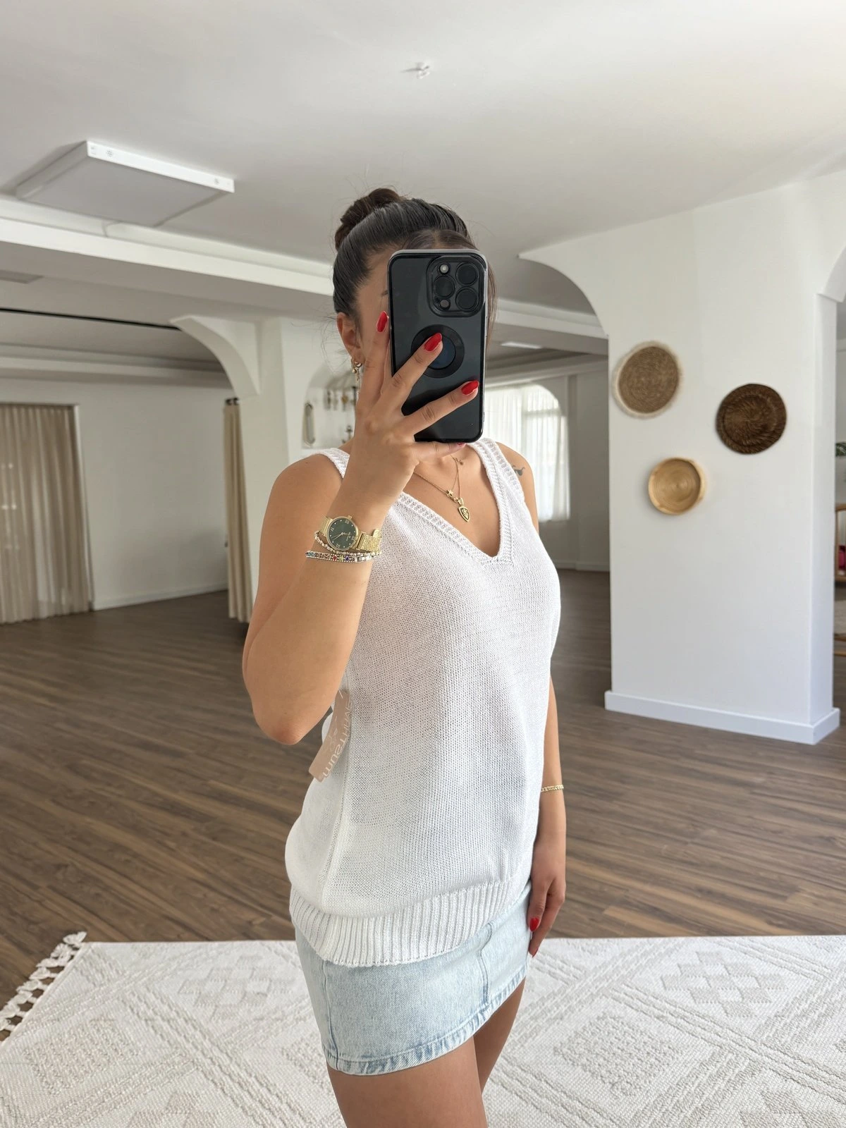 ÖN ARKA V YAKA MERSERİZE TRİKO VİSKON PAMUK ATLET – BEYAZ