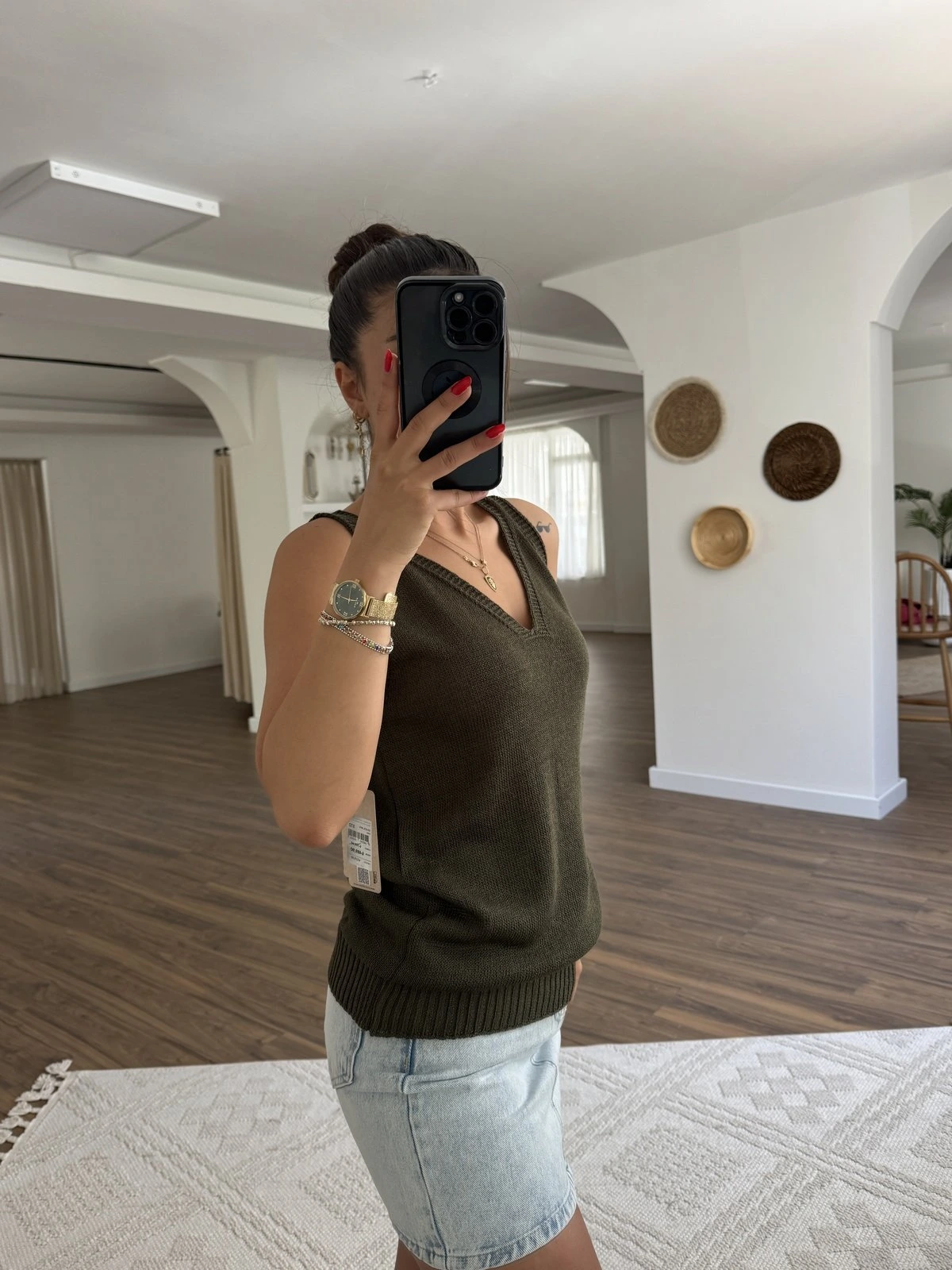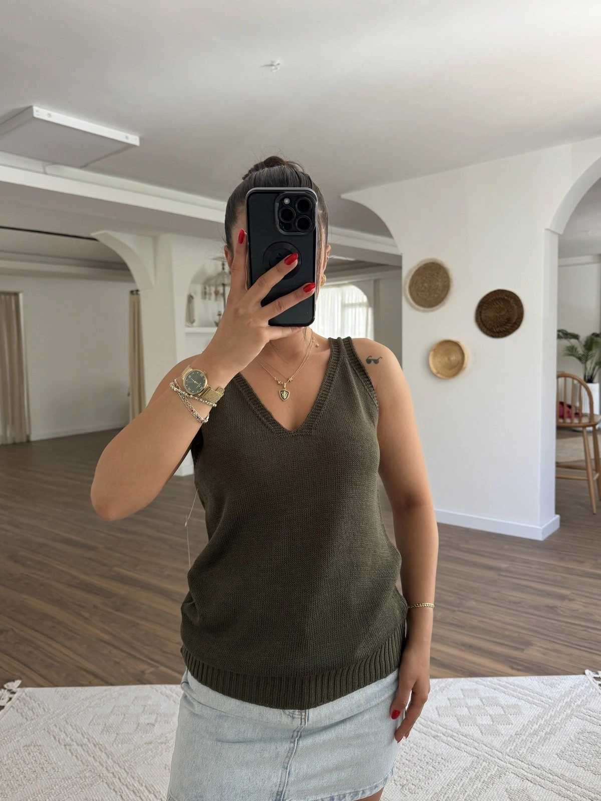 ÖN ARKA V YAKA MERSERİZE TRİKO VİSKON PAMUK ATLET – HAKİ