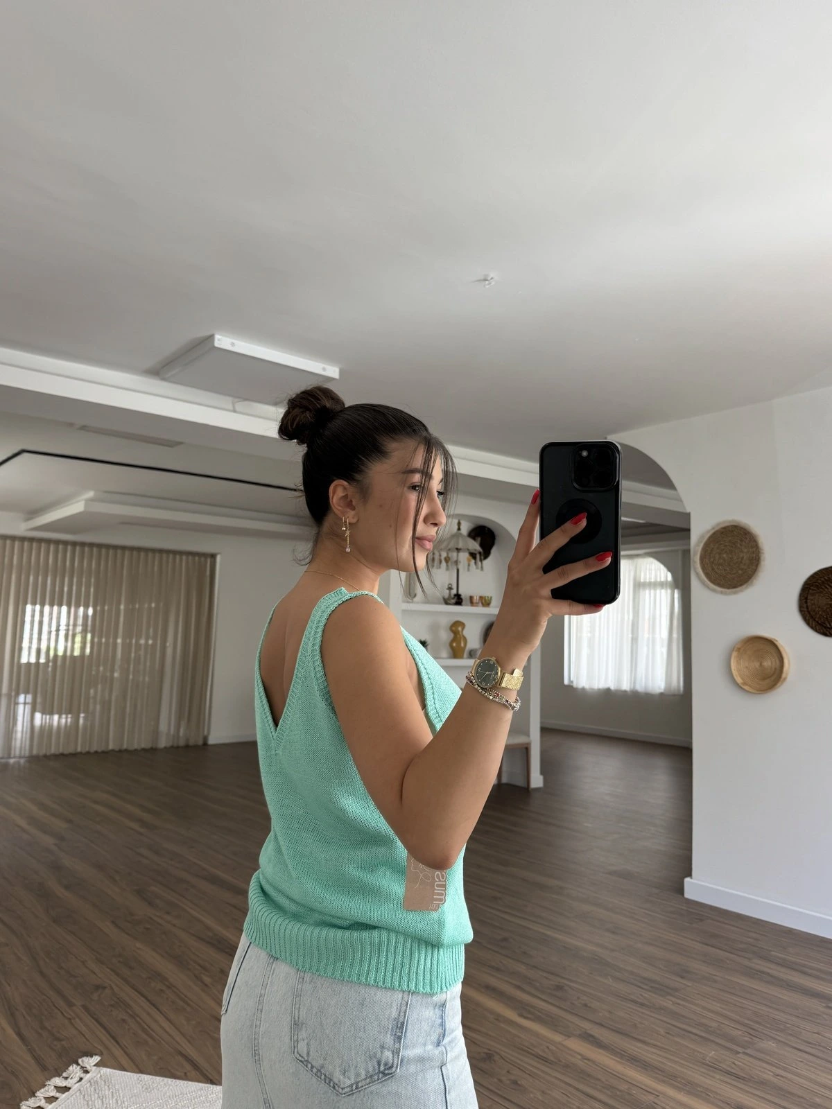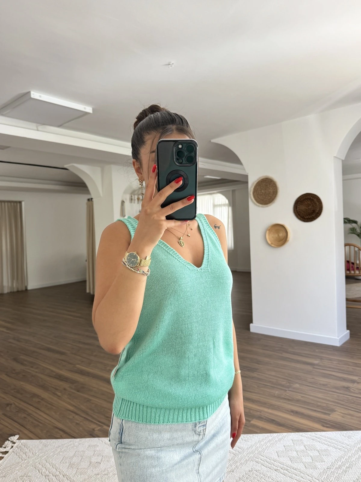 ÖN ARKA V YAKA MERSERİZE TRİKO VİSKON PAMUK ATLET – MİNT YEŞİLİ