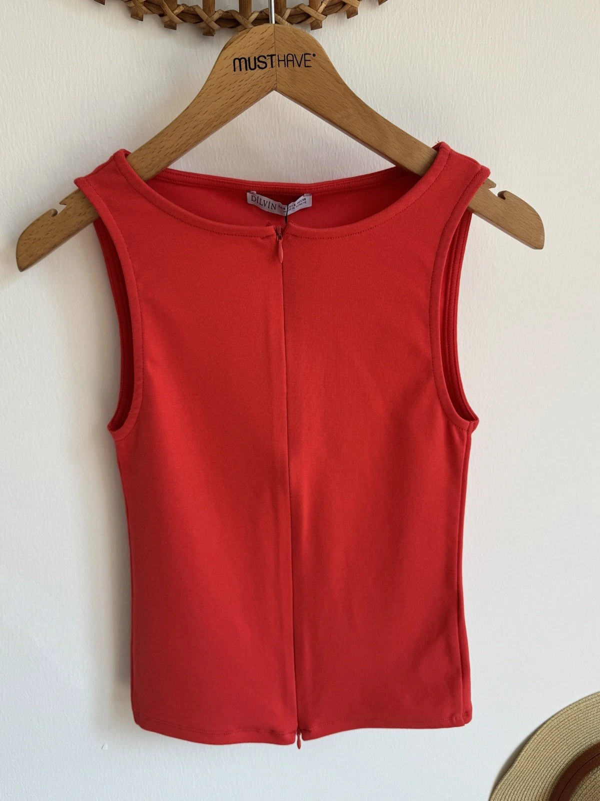 ÖN GİZLİ FERMUAR DETAY PAMUK LİKRA ATLET – KIRMIZI