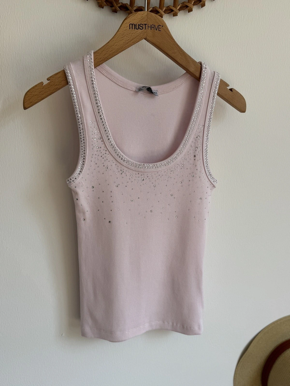 ÖN TAŞ BASKI U YAKA FİTİLLİ PAMUK KALIN ASKI ATLET – ŞEKER PEMBE