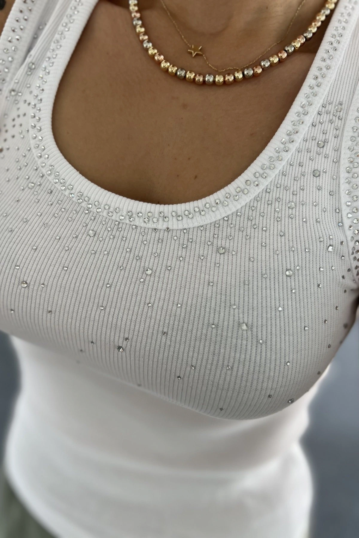 SERPME TAŞ U YAKA FİTİLLİ PAMUK ATLET – BEYAZ