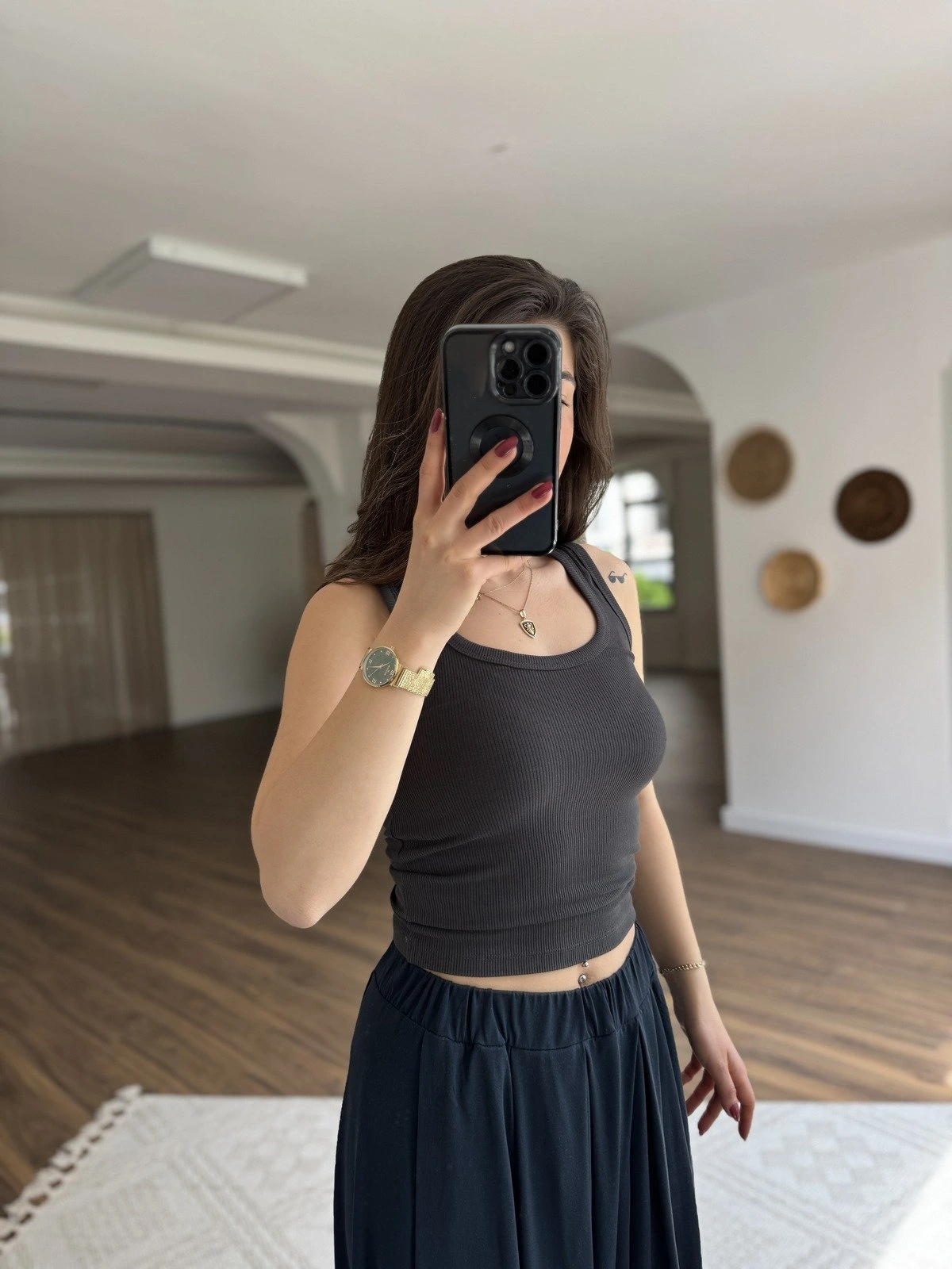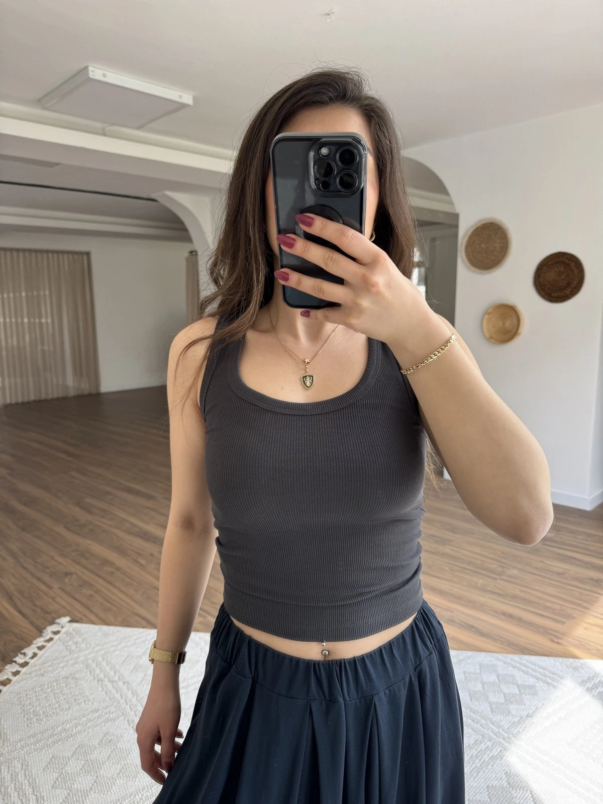 U YAKA FİTİLLİ LİKRALI ATLET – ANTRASİT
