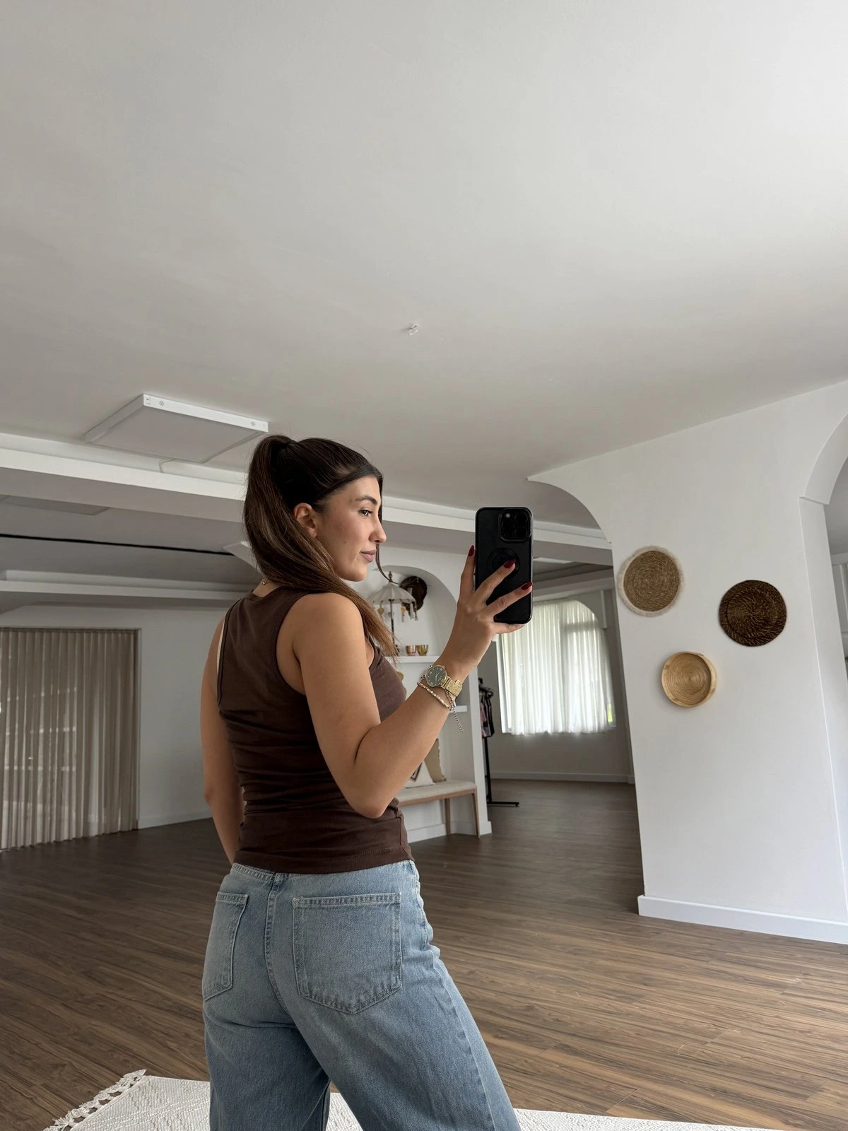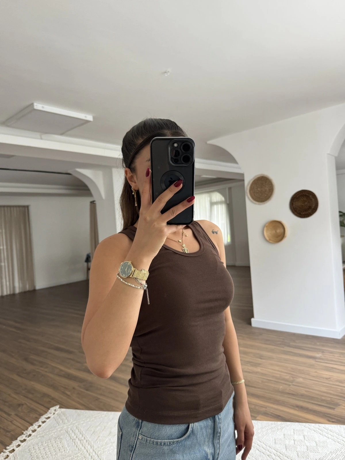 U YAKA KALIN ASKI PAMUK MODAL LİKRALI ATLET – AÇIK KAHVE