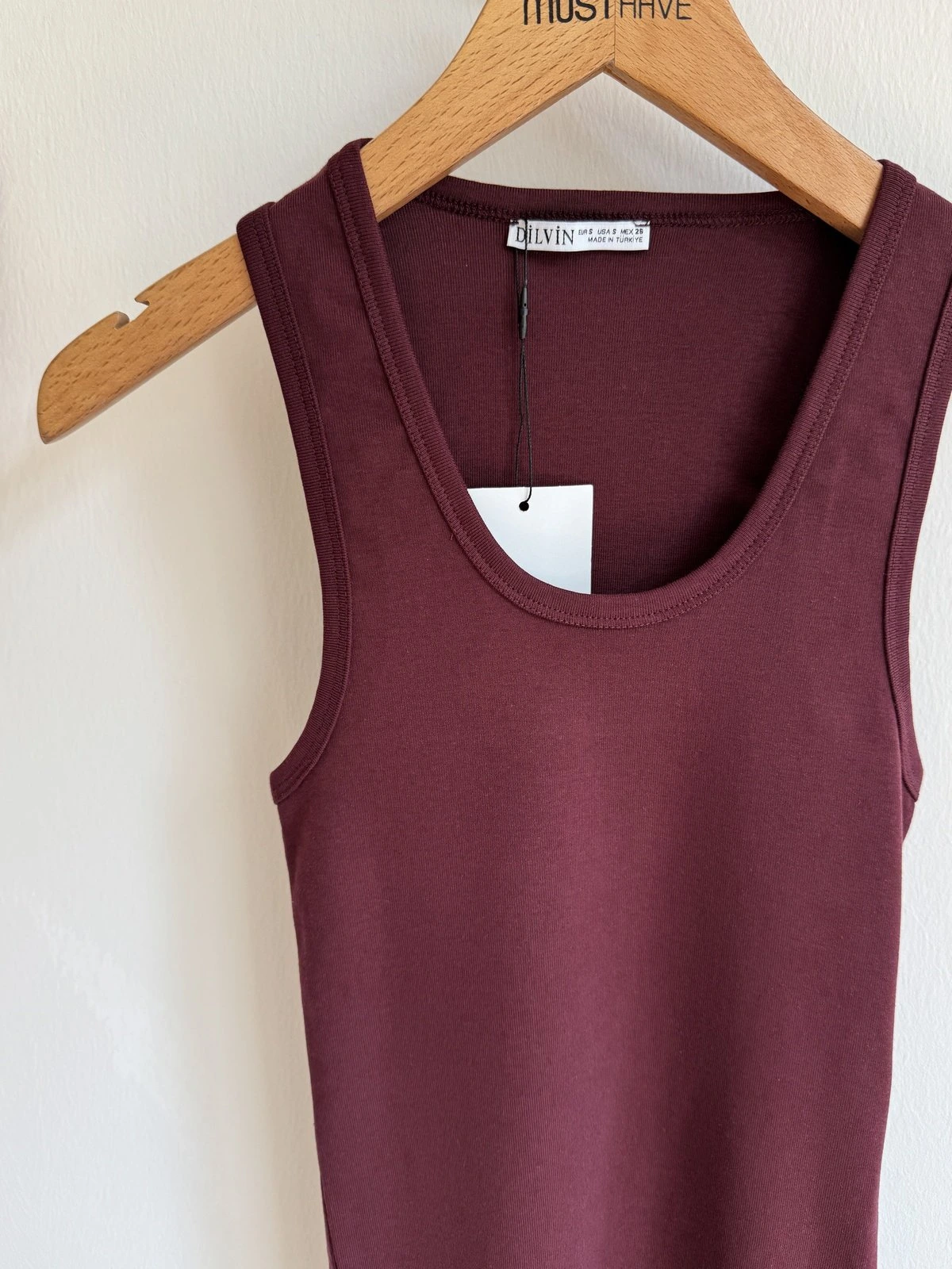 U YAKA KALIN ASKI PAMUK MODAL LİKRALI ATLET – BORDO
