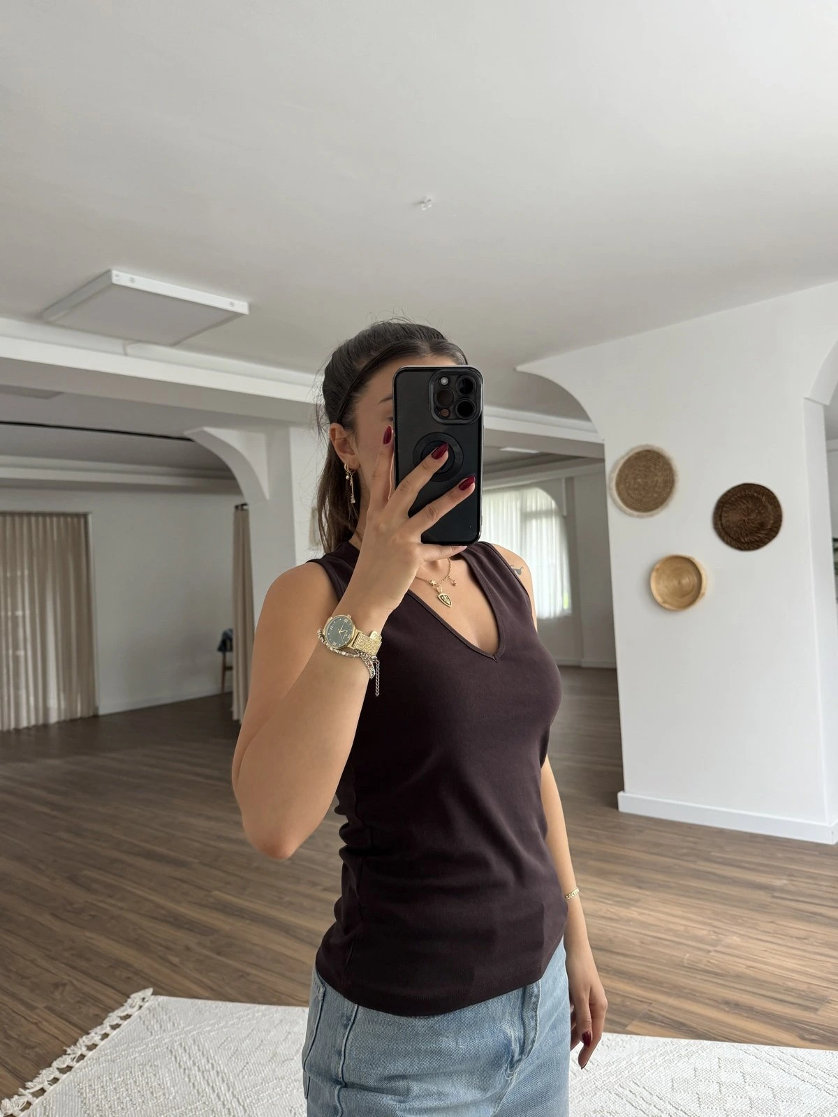 V YAKA KOLSUZ PAMUK ATLET – KOYU KAHVE