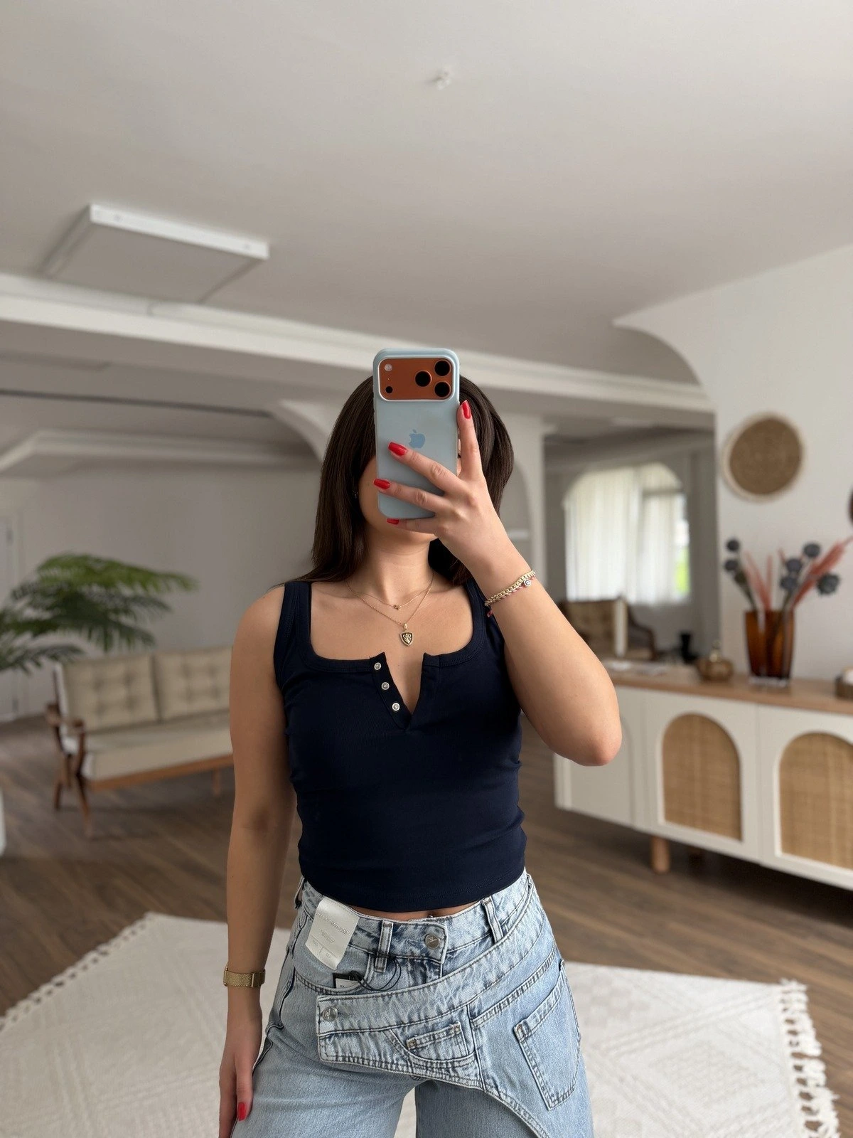 YAKA ÇITÇIT MODAL PAMUK ATLET – LACİVERT