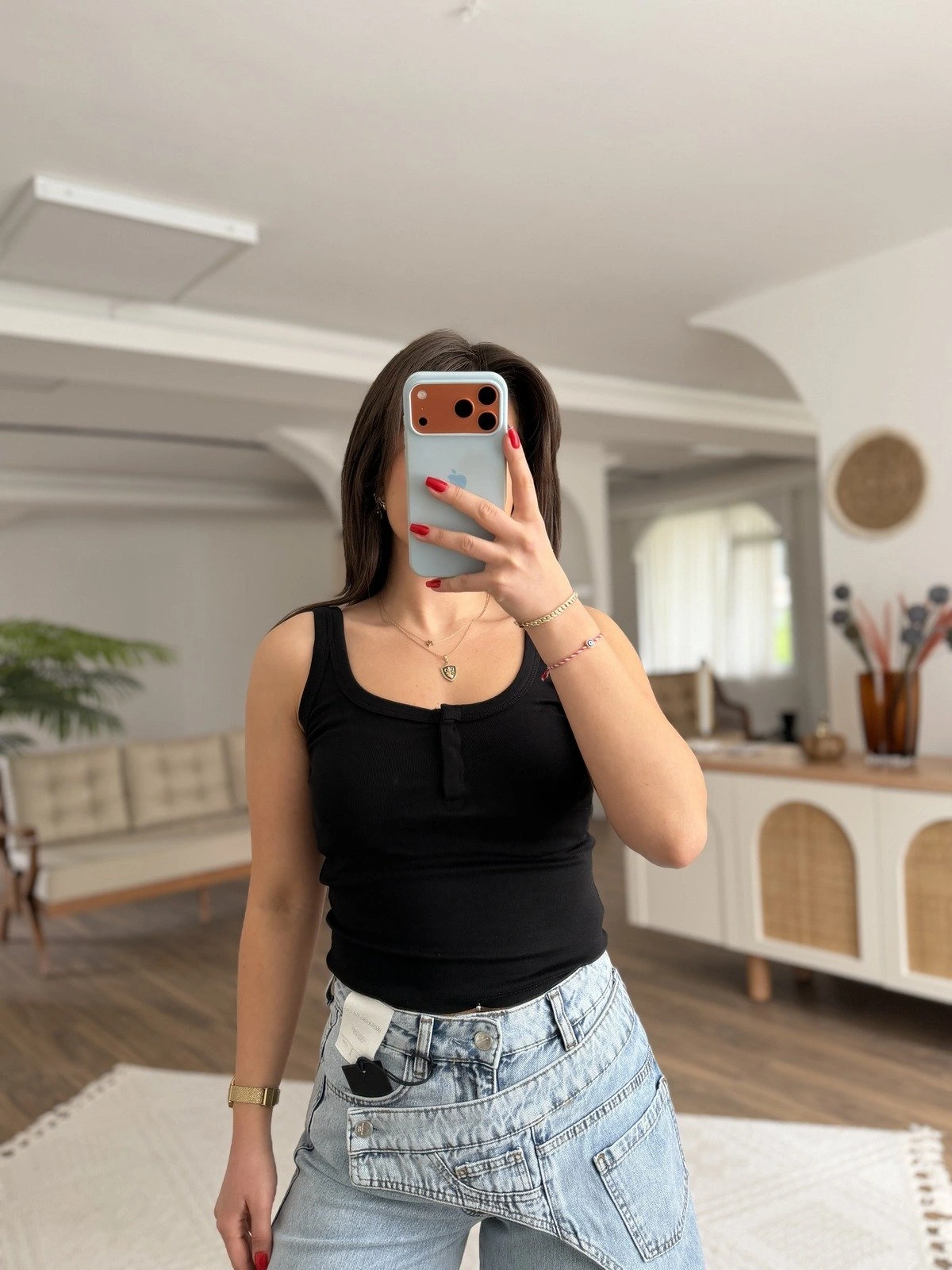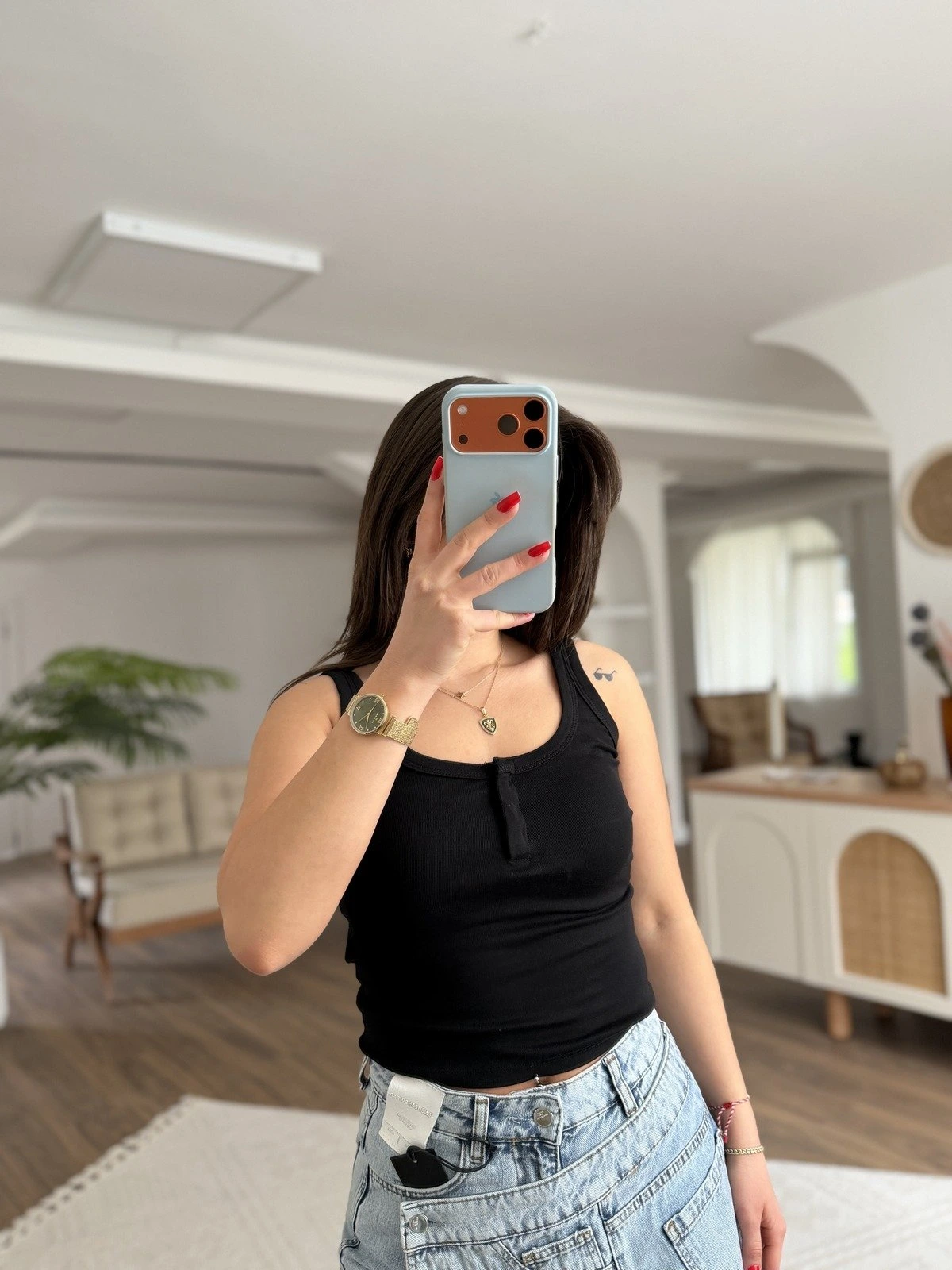 YAKA ÇITÇIT MODAL PAMUK ATLET – SİYAH