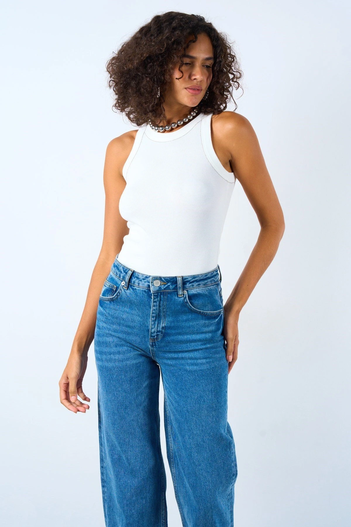 YAKA KOL ZİNCİR ŞERİT FİTİLLİ PAMUK ATLET - BEYAZ