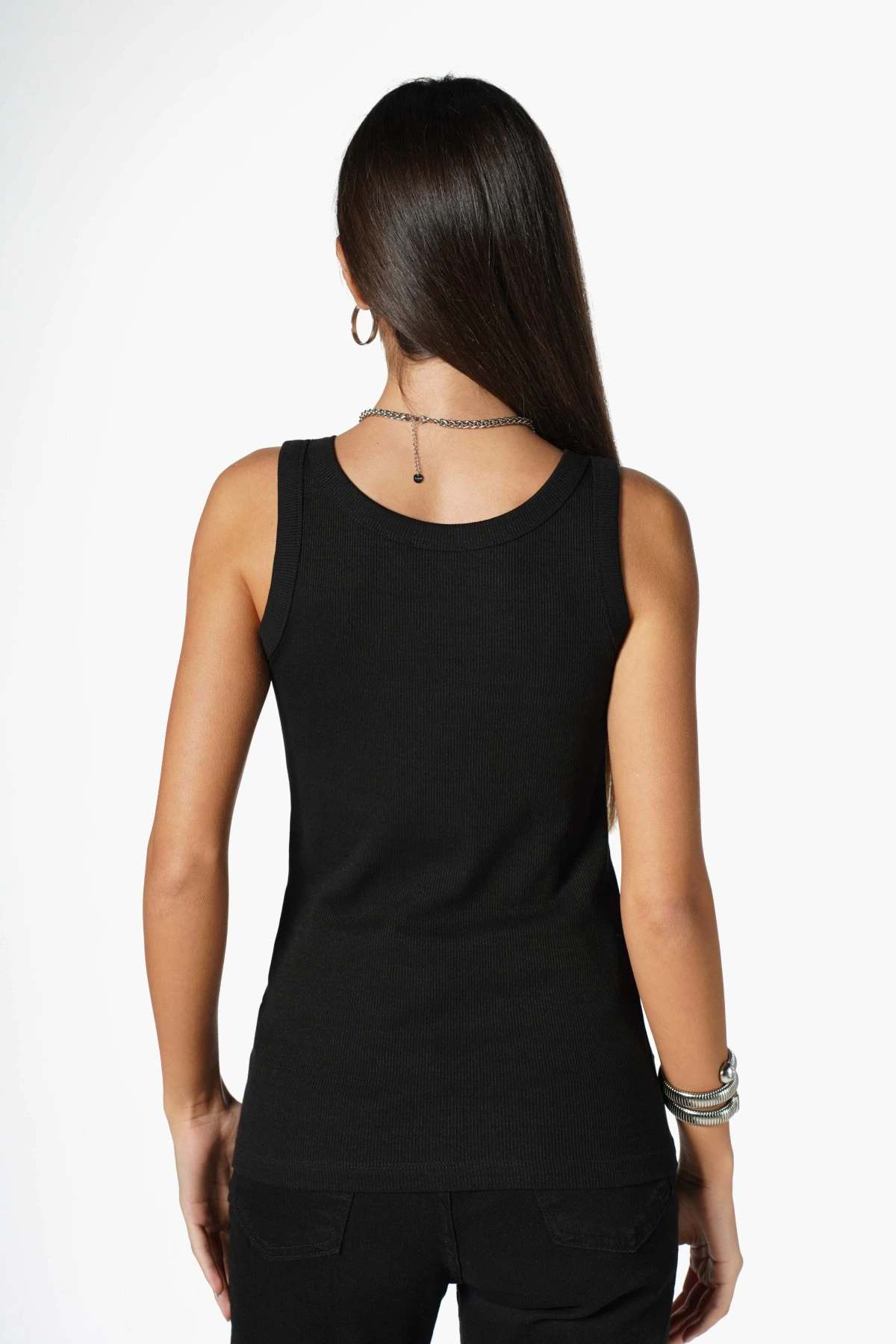 YUVARLAK YAKA FİTİLLİ PAMUK ATLET – SİYAH