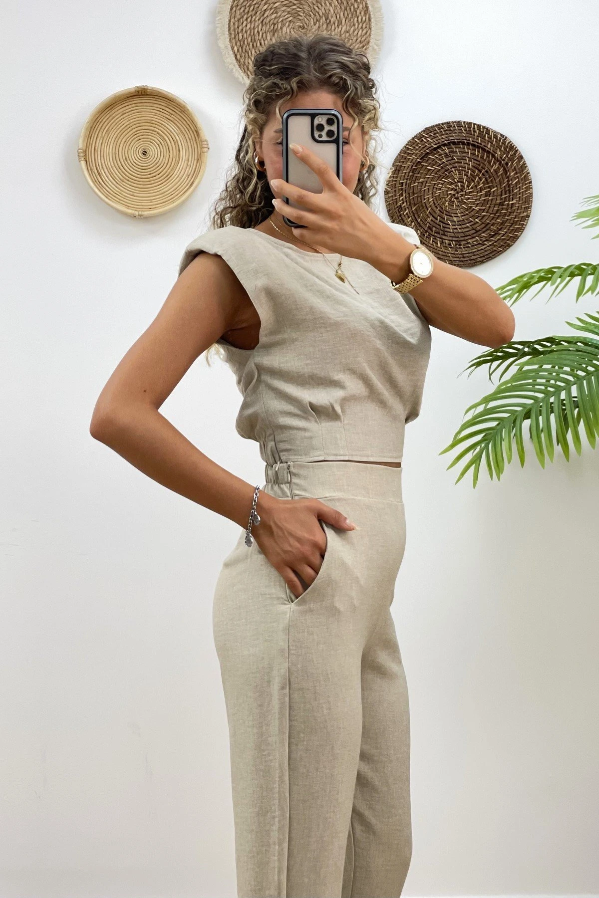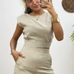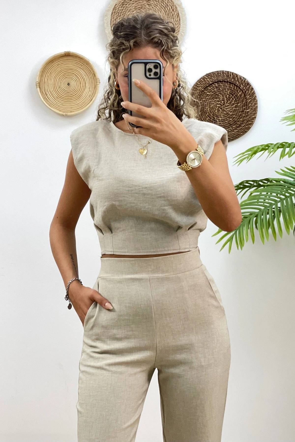 ARKA BEL LASTİK VATKALI CROP BLUZ – TAŞ