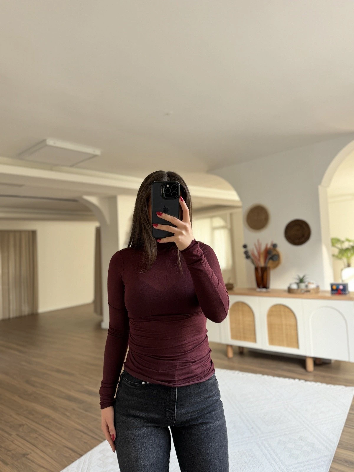 BALIKÇI YAKA KAŞMİR KARIŞIM İNCE MODAL BLUZ – BORDO