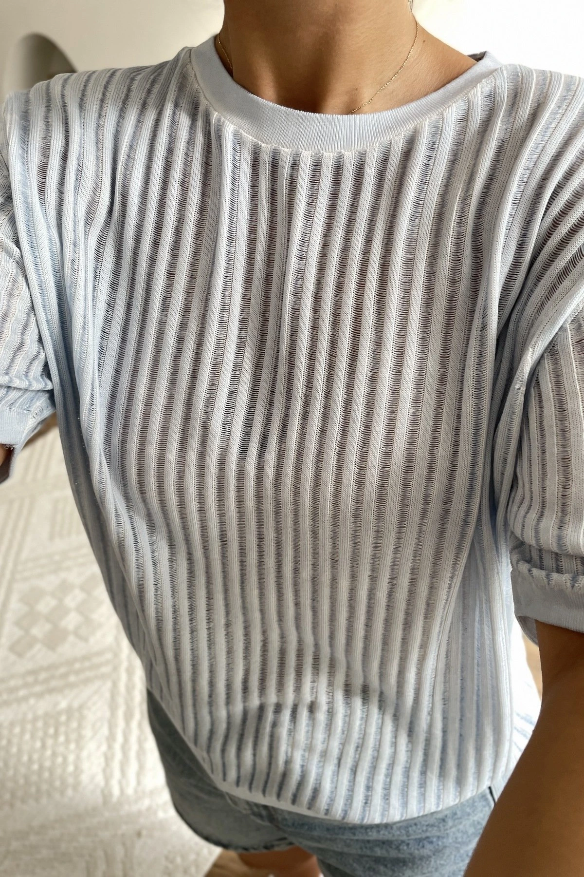 BİSİKLET YAKA AJURLU VİSKON BLUZ – BEBE MAVİ