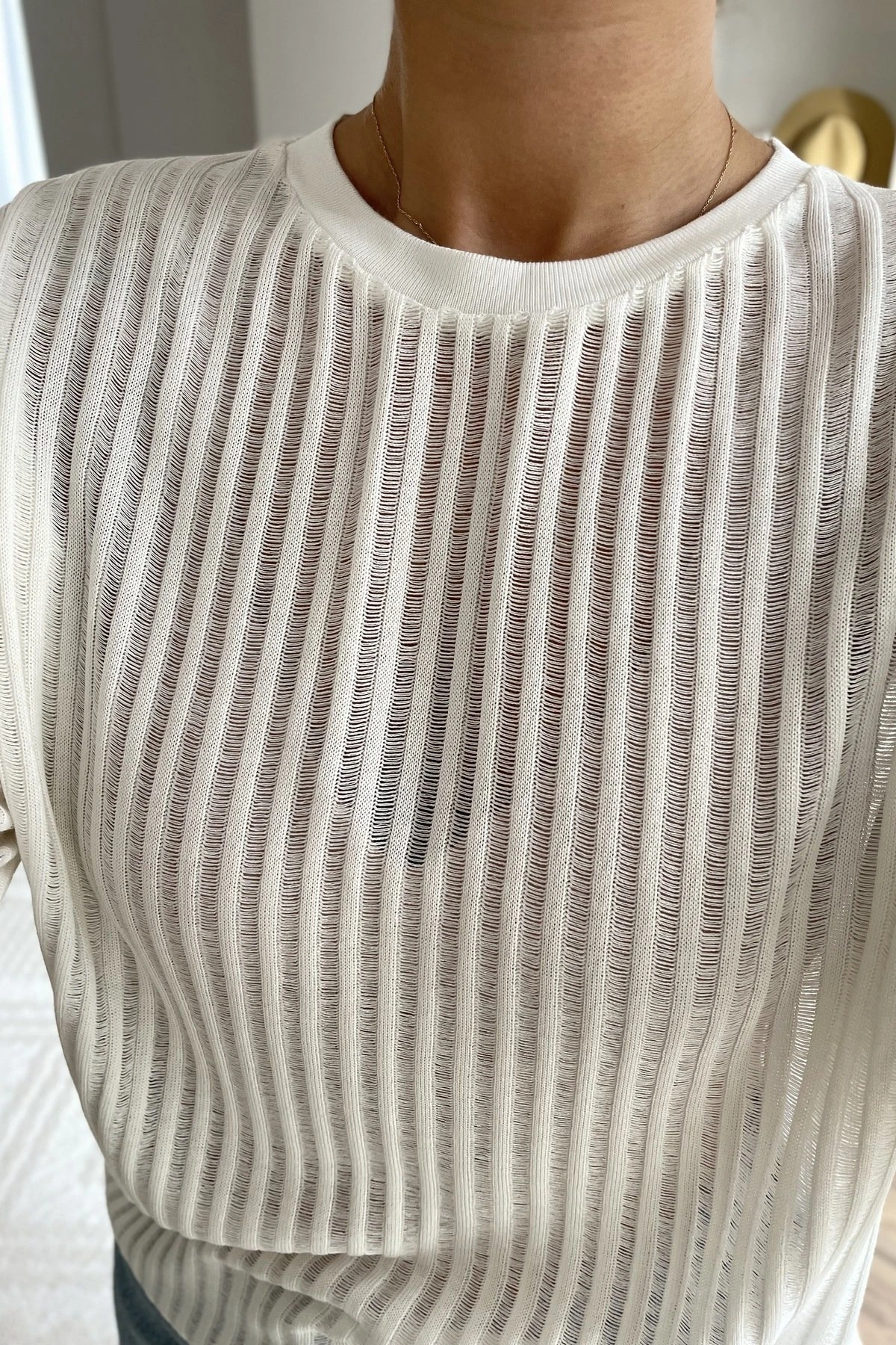 BİSİKLET YAKA AJURLU VİSKON BLUZ – EKRU